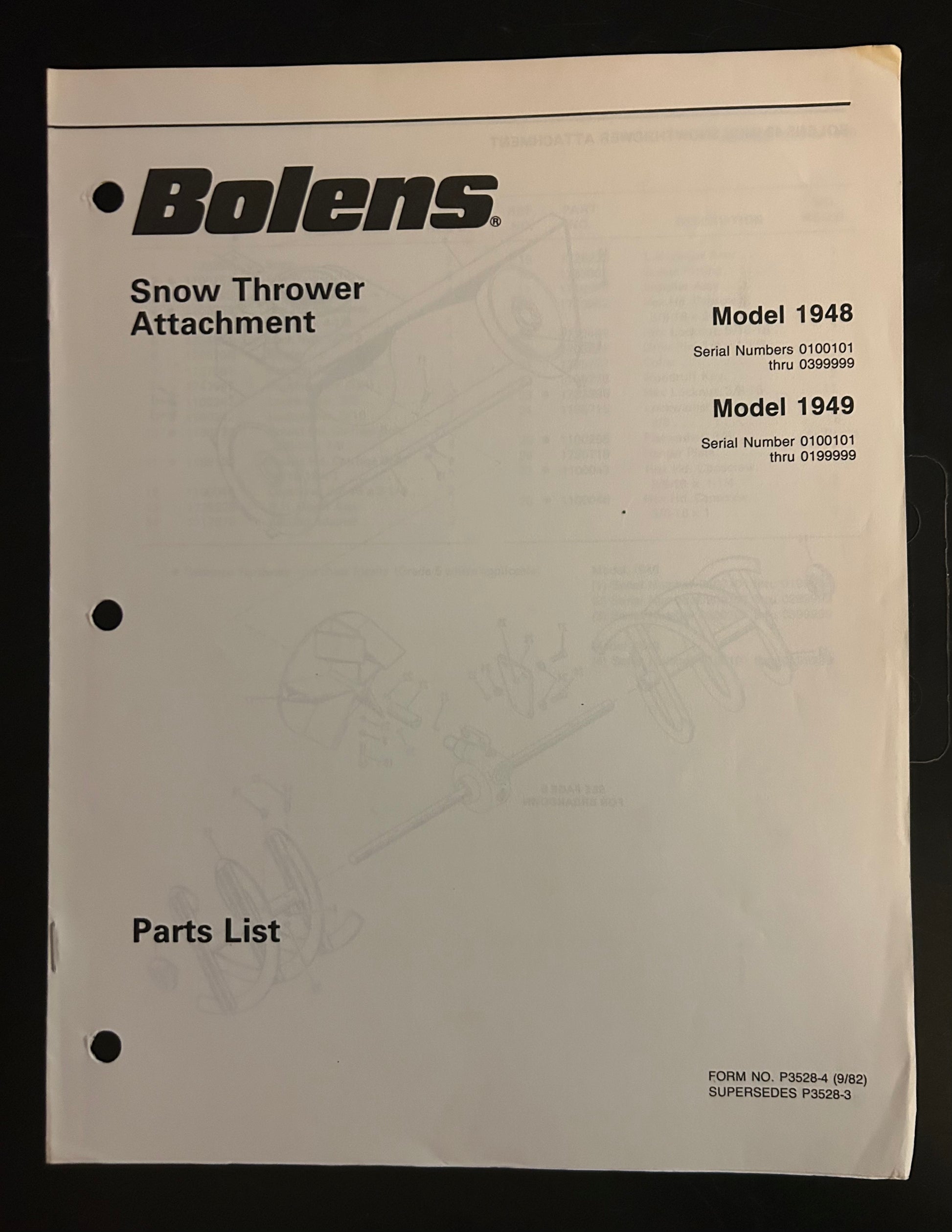 Bolens _ Snow Thrower Attachment model 1948 & 1949 _ Parts List