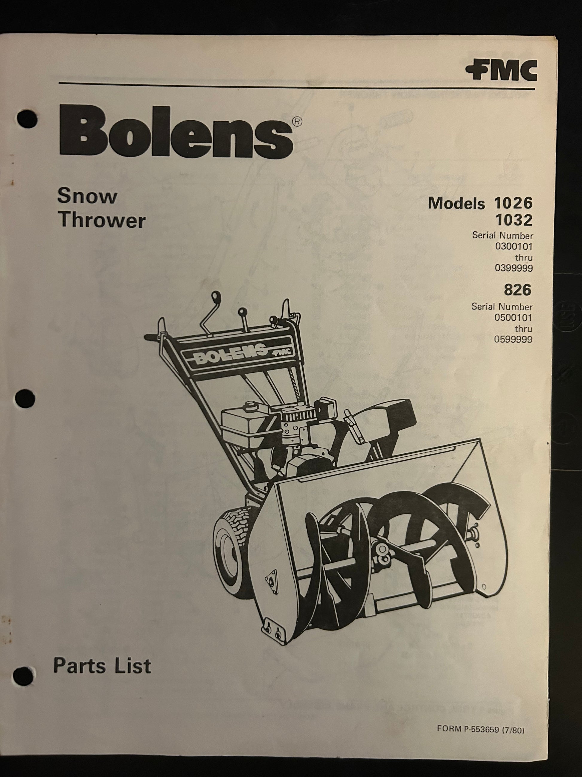 Bolens _ Snow Thrower model 1026, 1032 & 826 _ Parts List