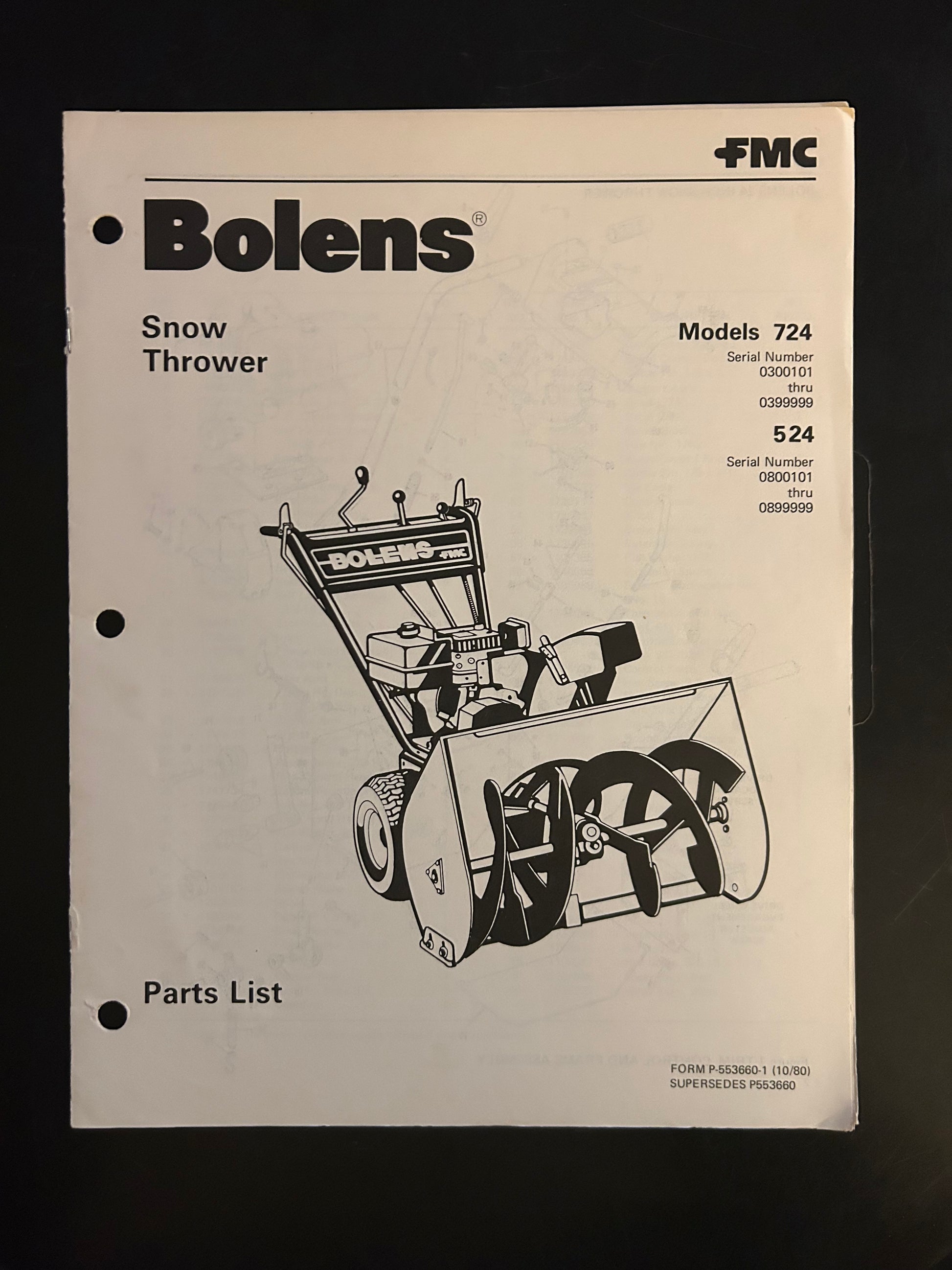 Bolens _ Snow Thrower model 724 & 524 _ Parts List