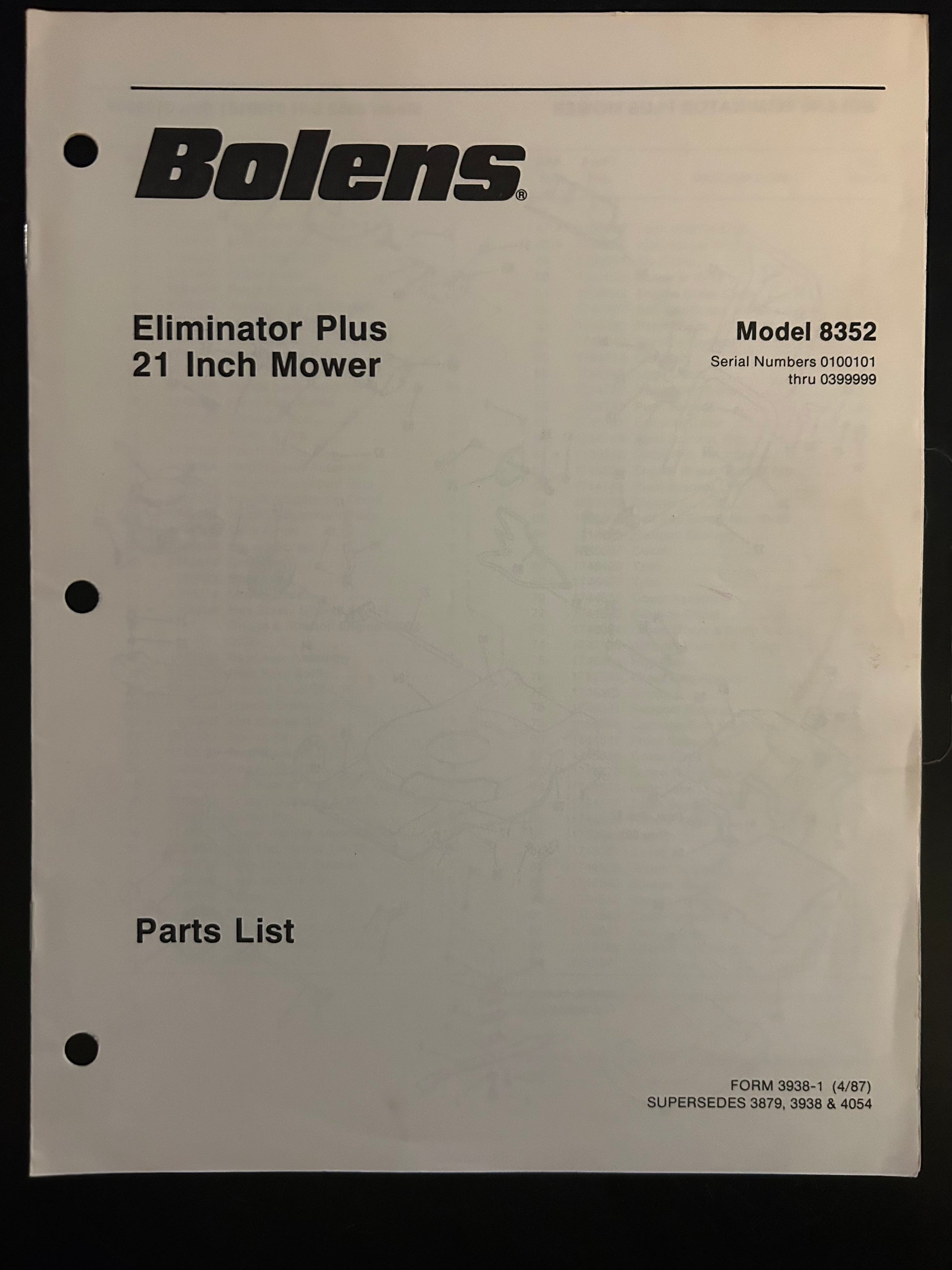 Bolens _ Eliminator Plus Mower 21” model 8352 _ Parts List