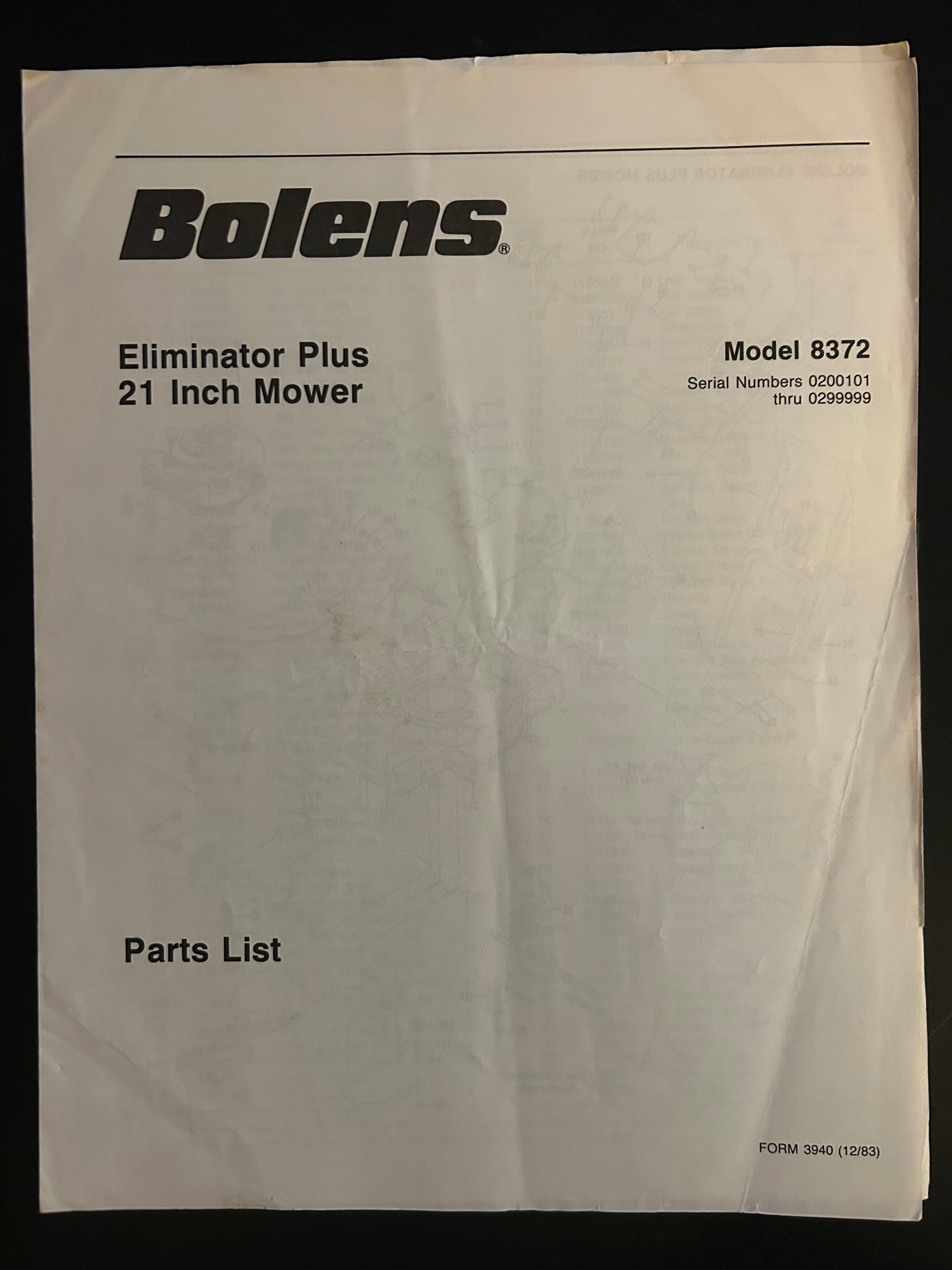 Bolens _ Eliminator Plus Mower 21” model 8372 _ Parts List