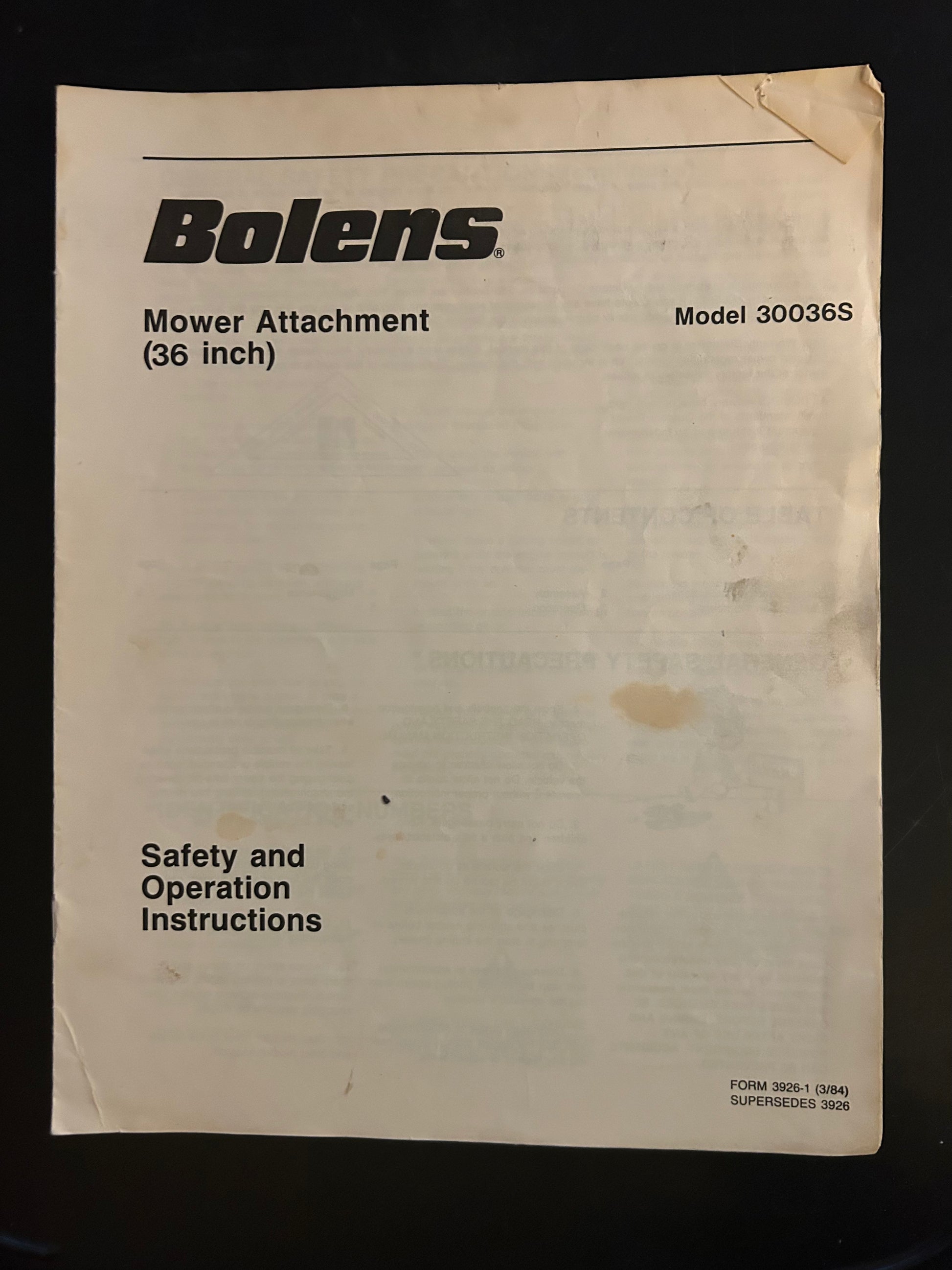 Bolens _ Mower Attachment 36” model 30036S _ Safety & Operation Instructions