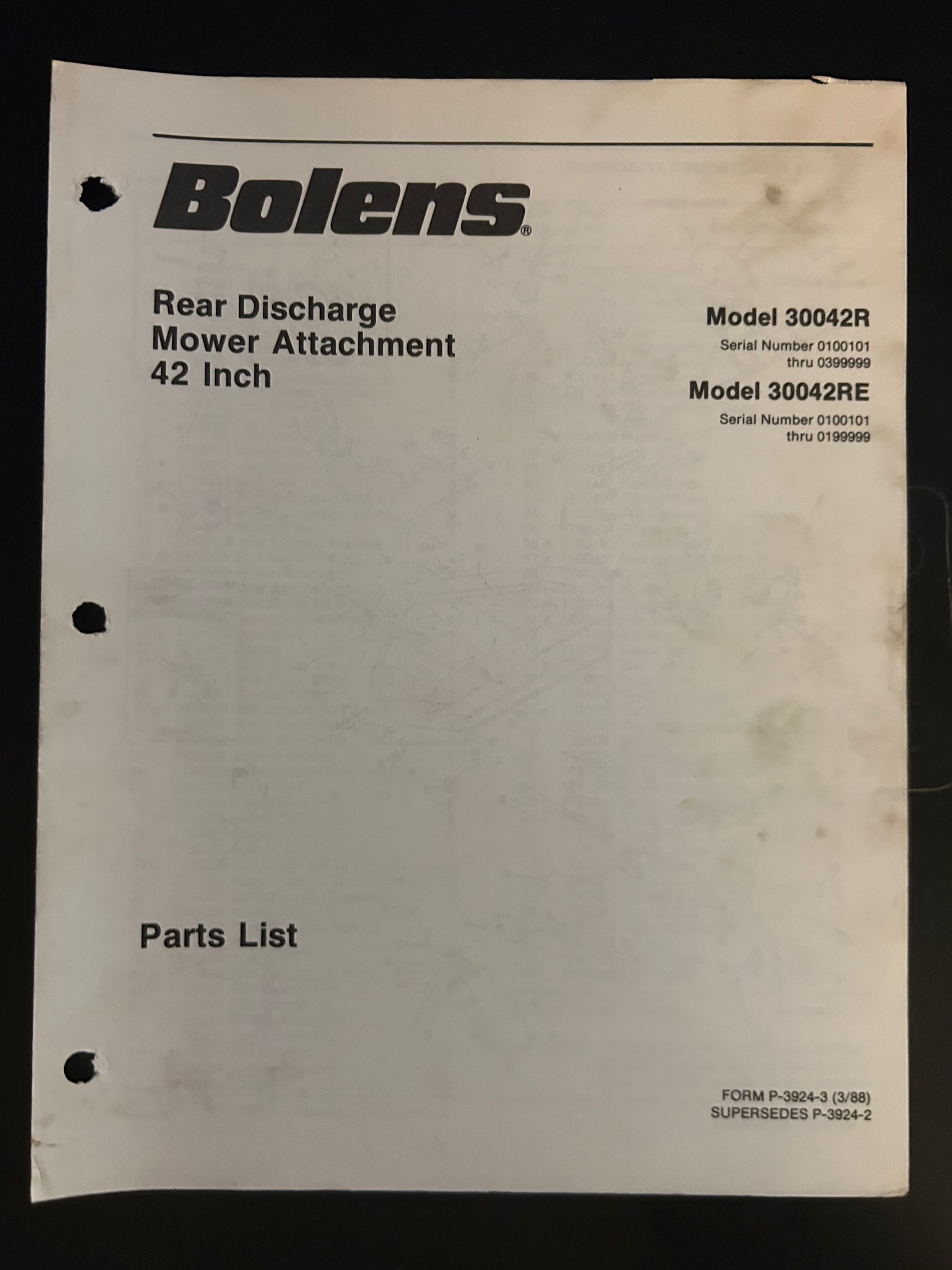 Bolens _ Rear Discharge Mower Attachment 42” model 30042R & 30042RE _ Parts List