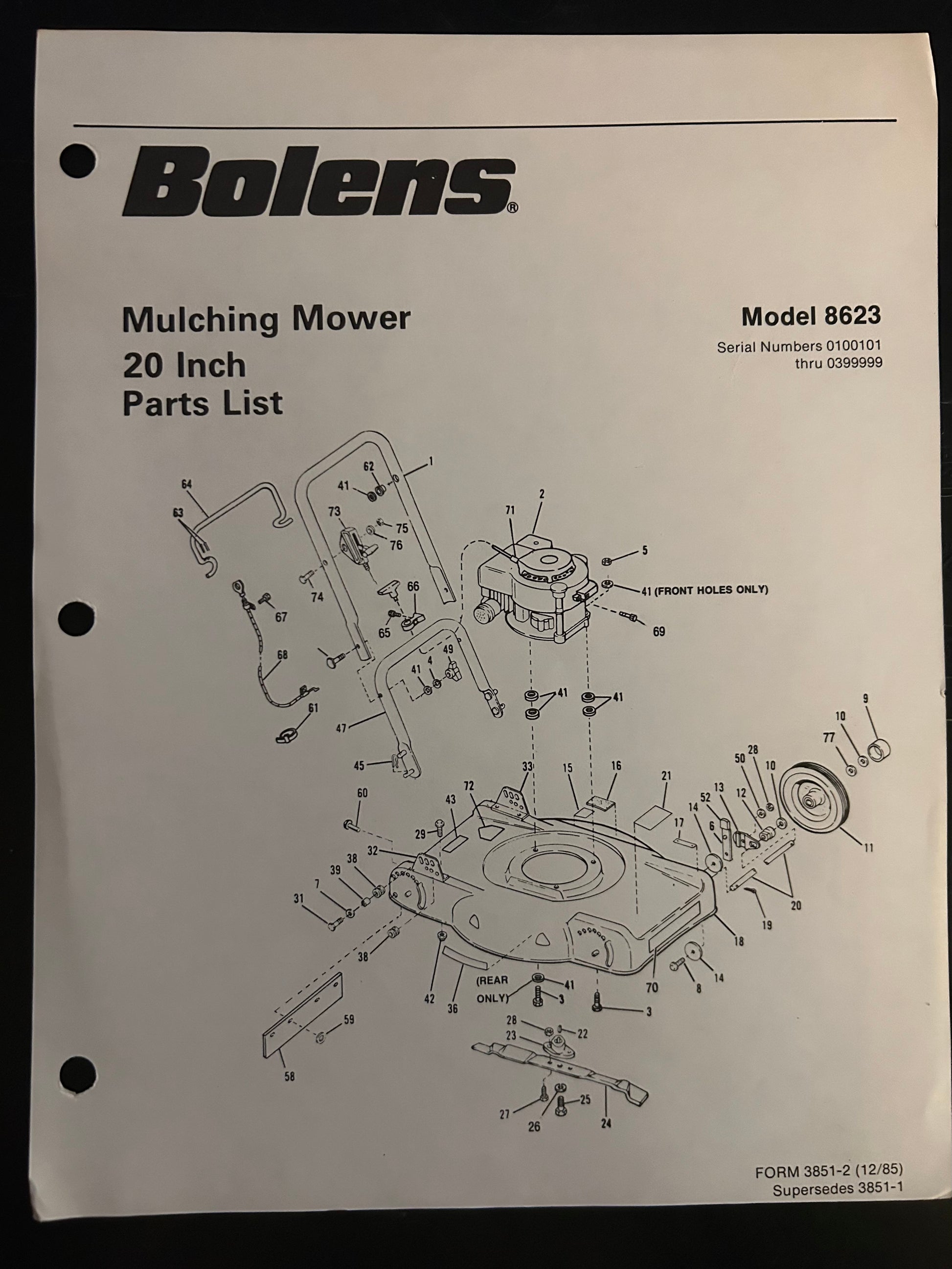 Bolens _ Mulching Mower 20” model 8623 _ Parts List