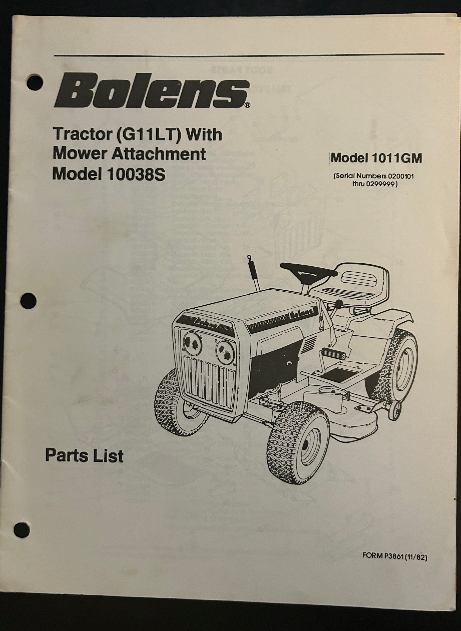 Bolens _ Tractor (G11LT) model 1011GM with Mower Attachment model 10038S _ Parts List