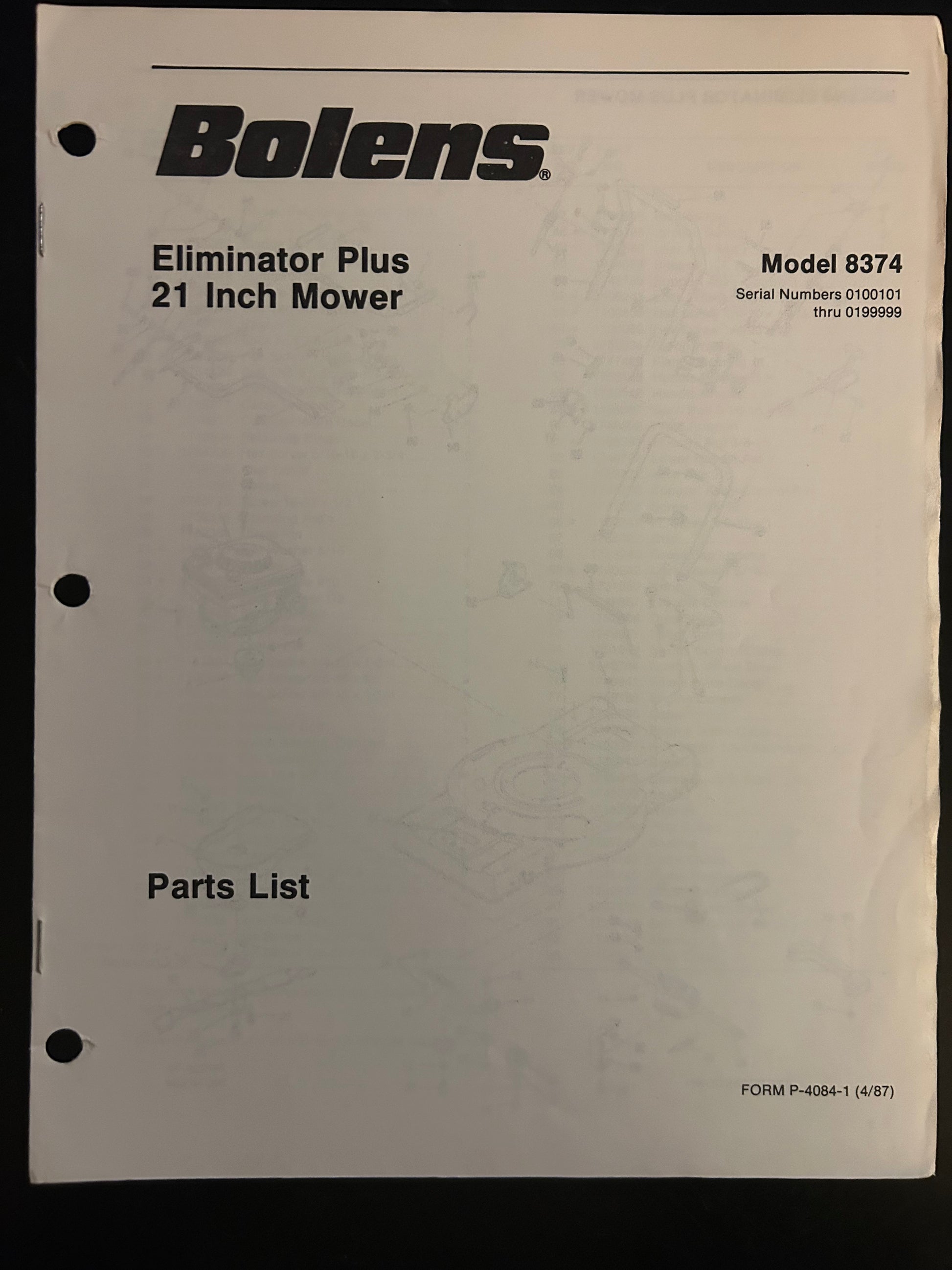 Bolens _ Eliminator Plus Mower 21” model 8374 _ Parts List