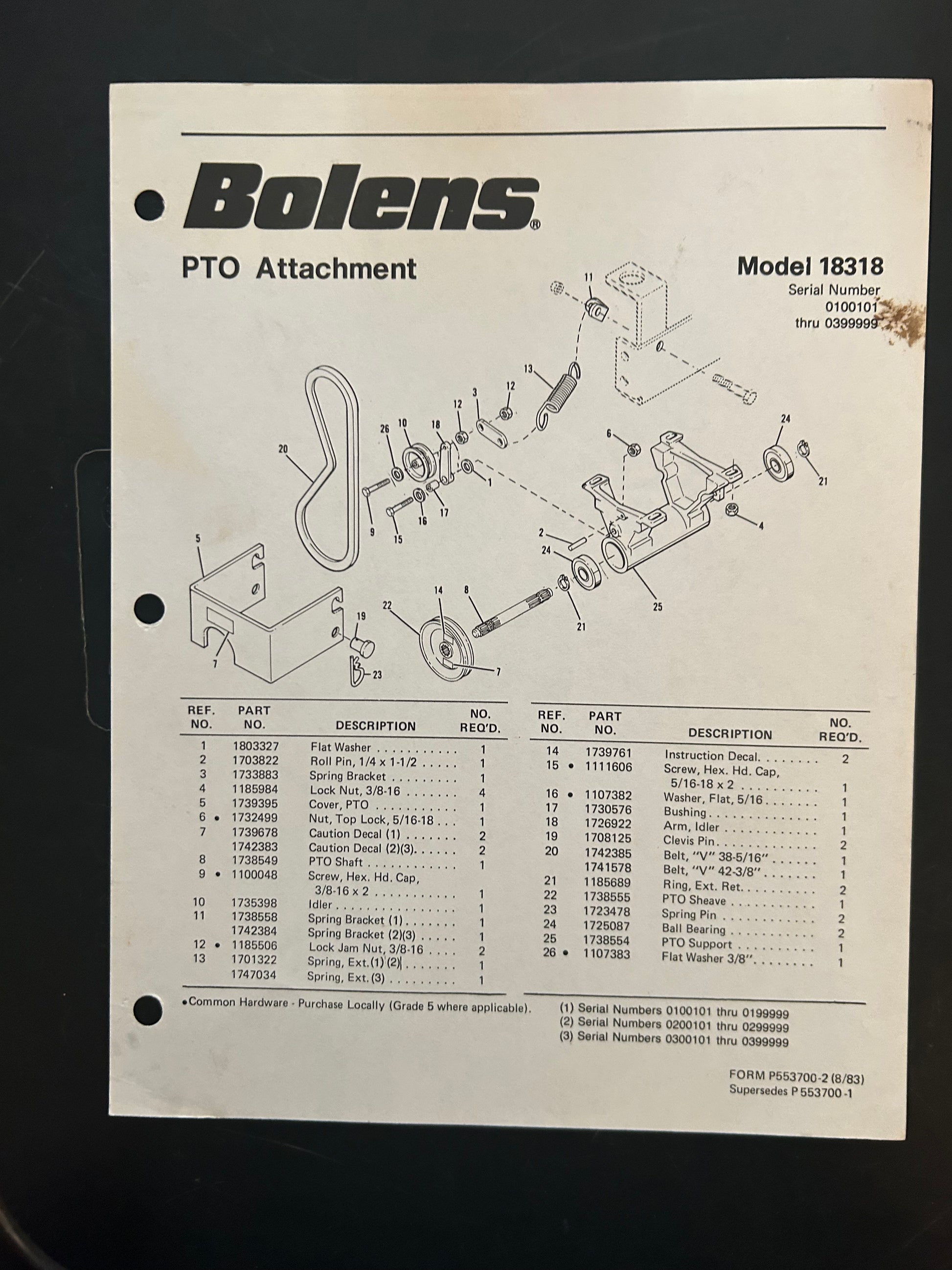 Bolens _ PTO Attachment model 18318 _ Parts List