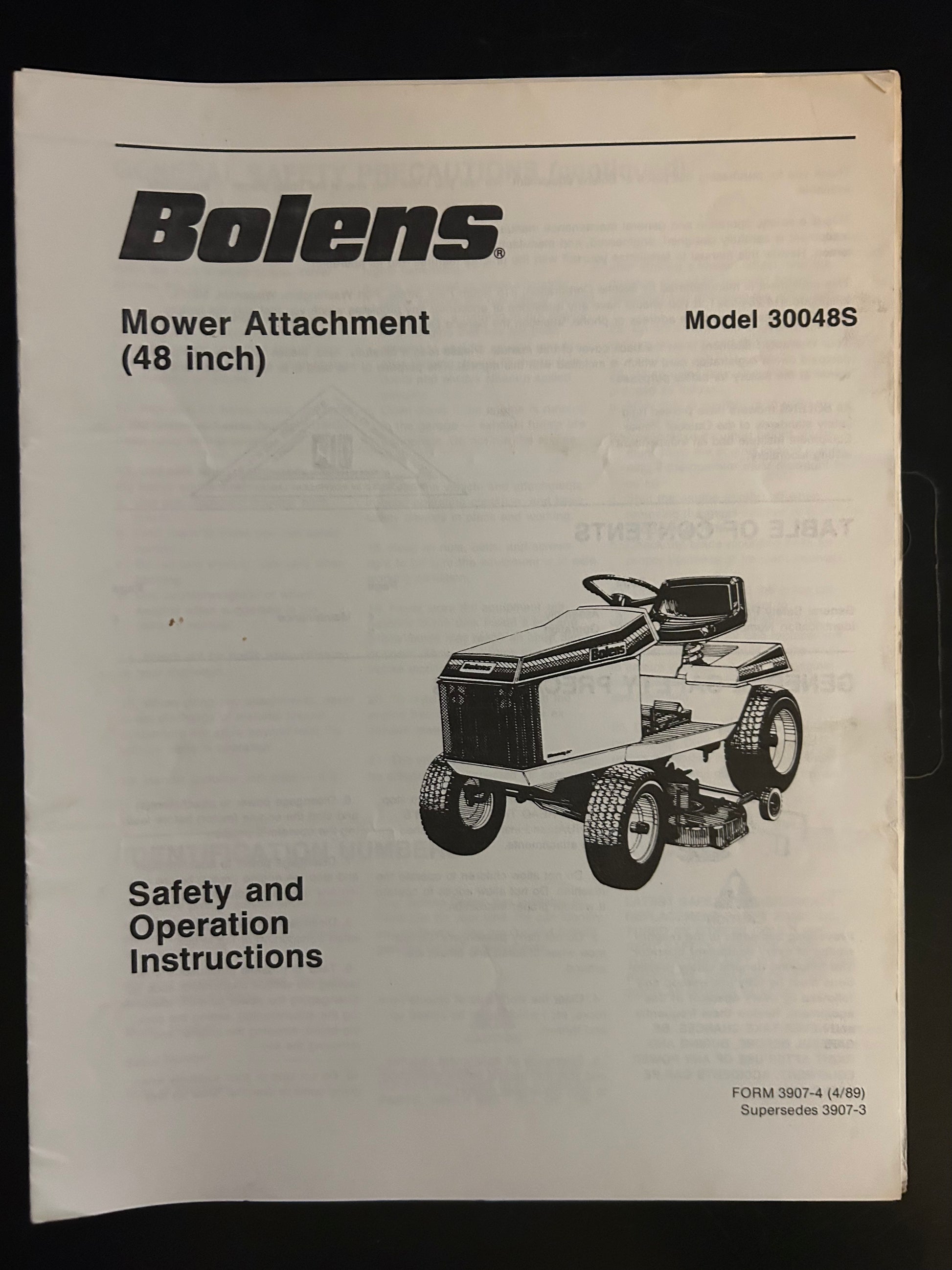Bolens _ Side Discharge Mower Attachment 48” model 30048S _ Safety & Operation Instructions