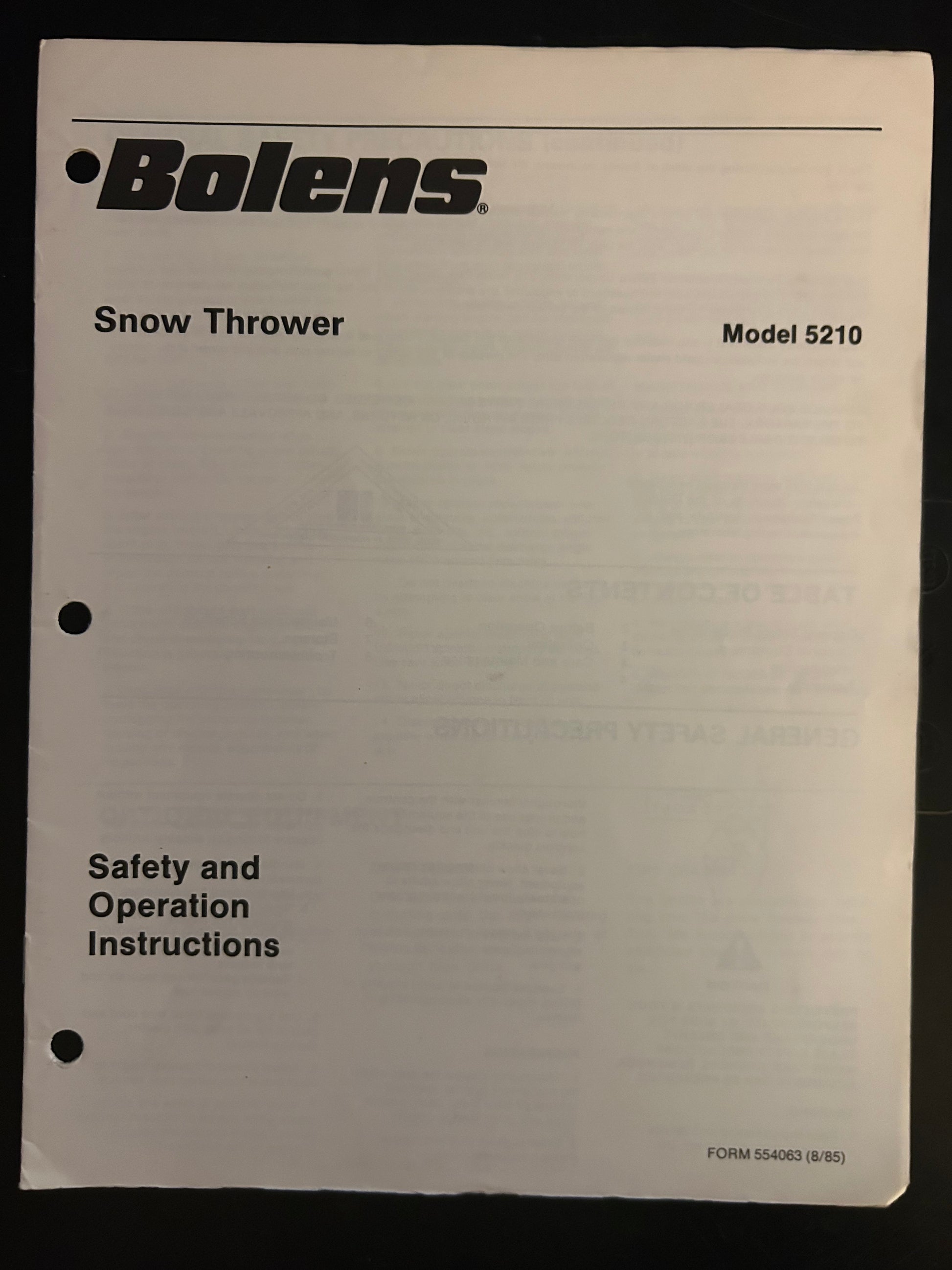 Bolens _ Snow Thrower model 5210 _ Parts List