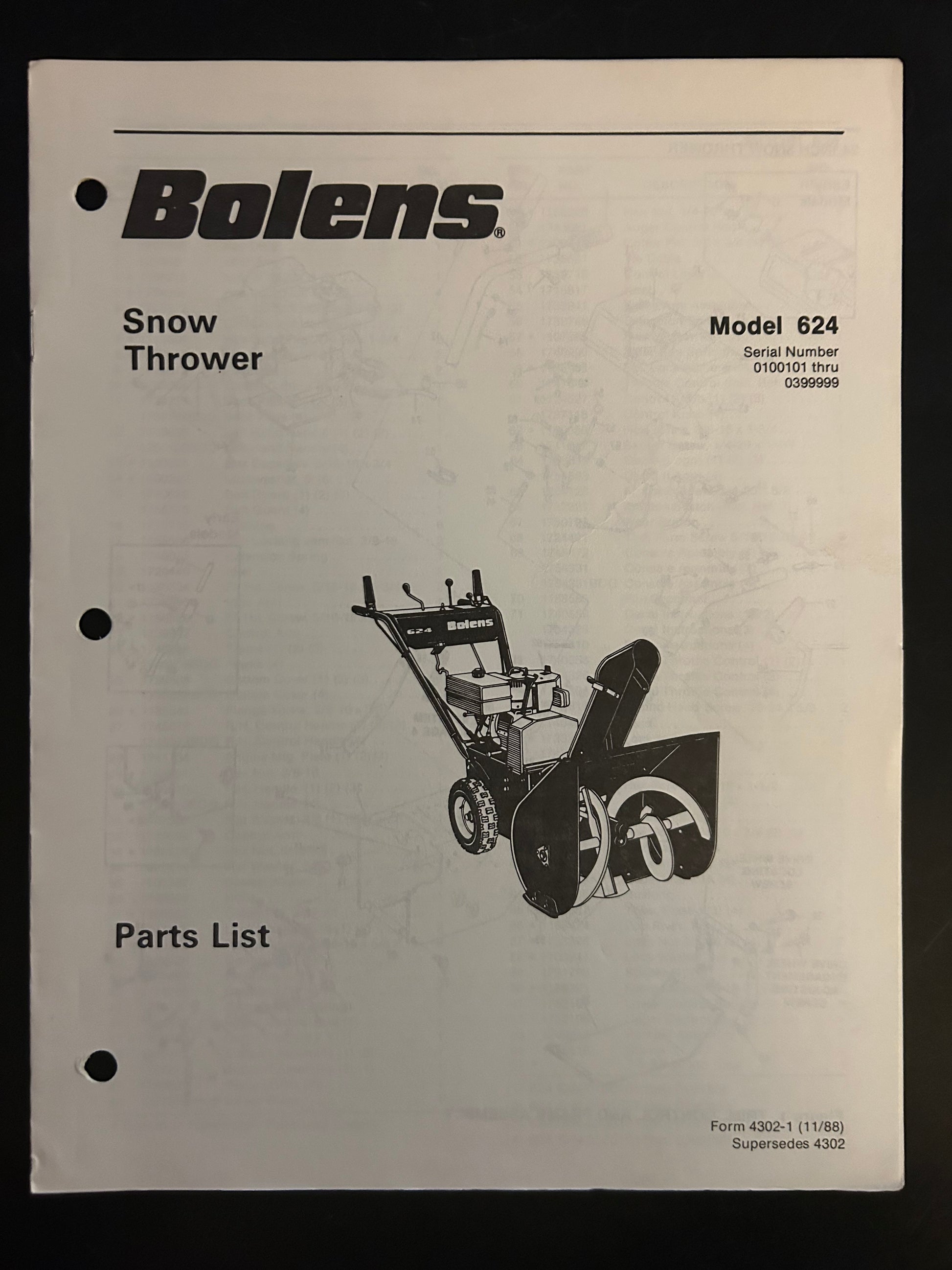 Bolens _ Snow Thrower model 624 _ Parts List