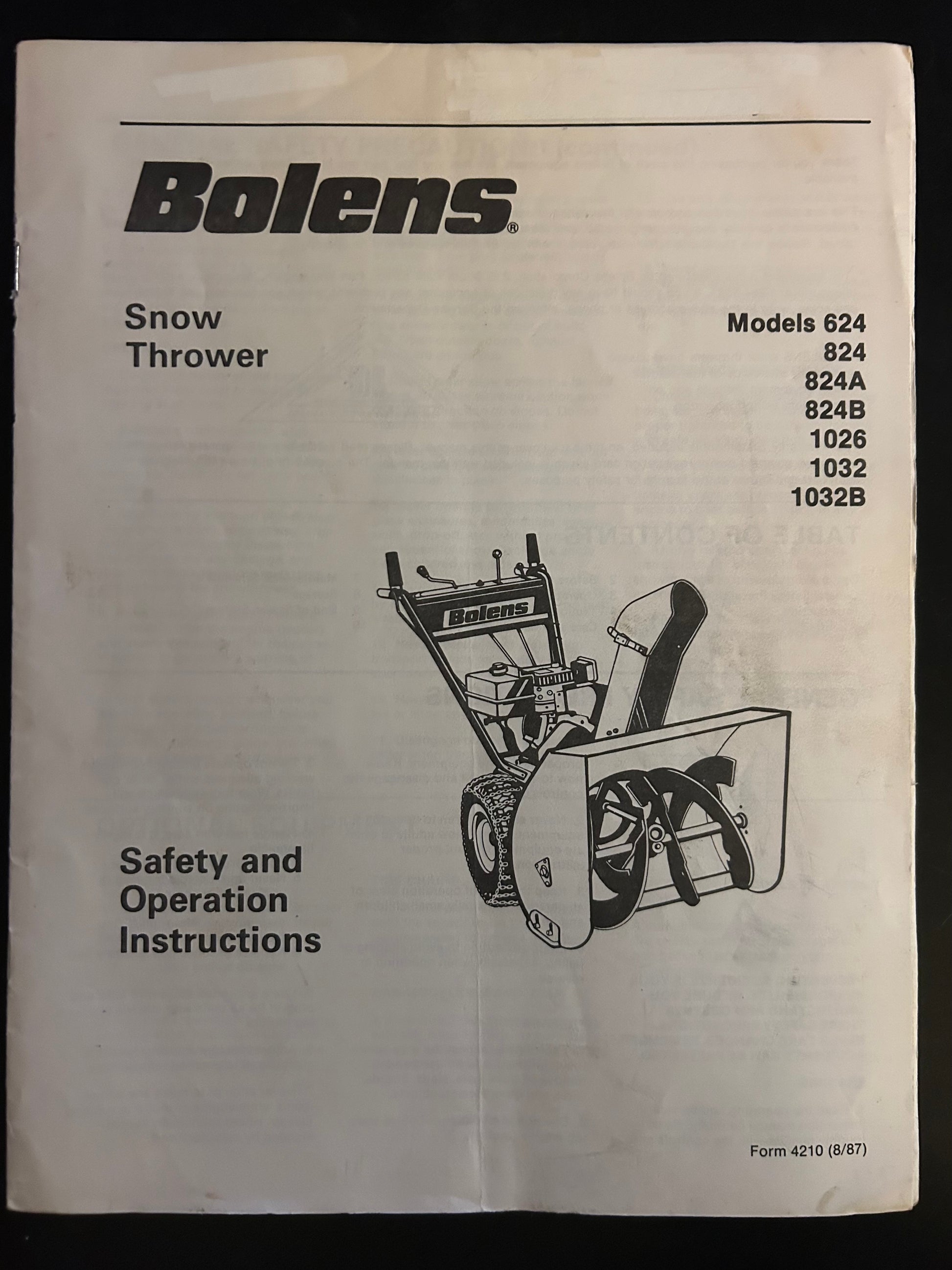Bolens _ Snow Thrower model 624, 823, 824A, 1026 & 1032 _ Safety & Operation Instructions
