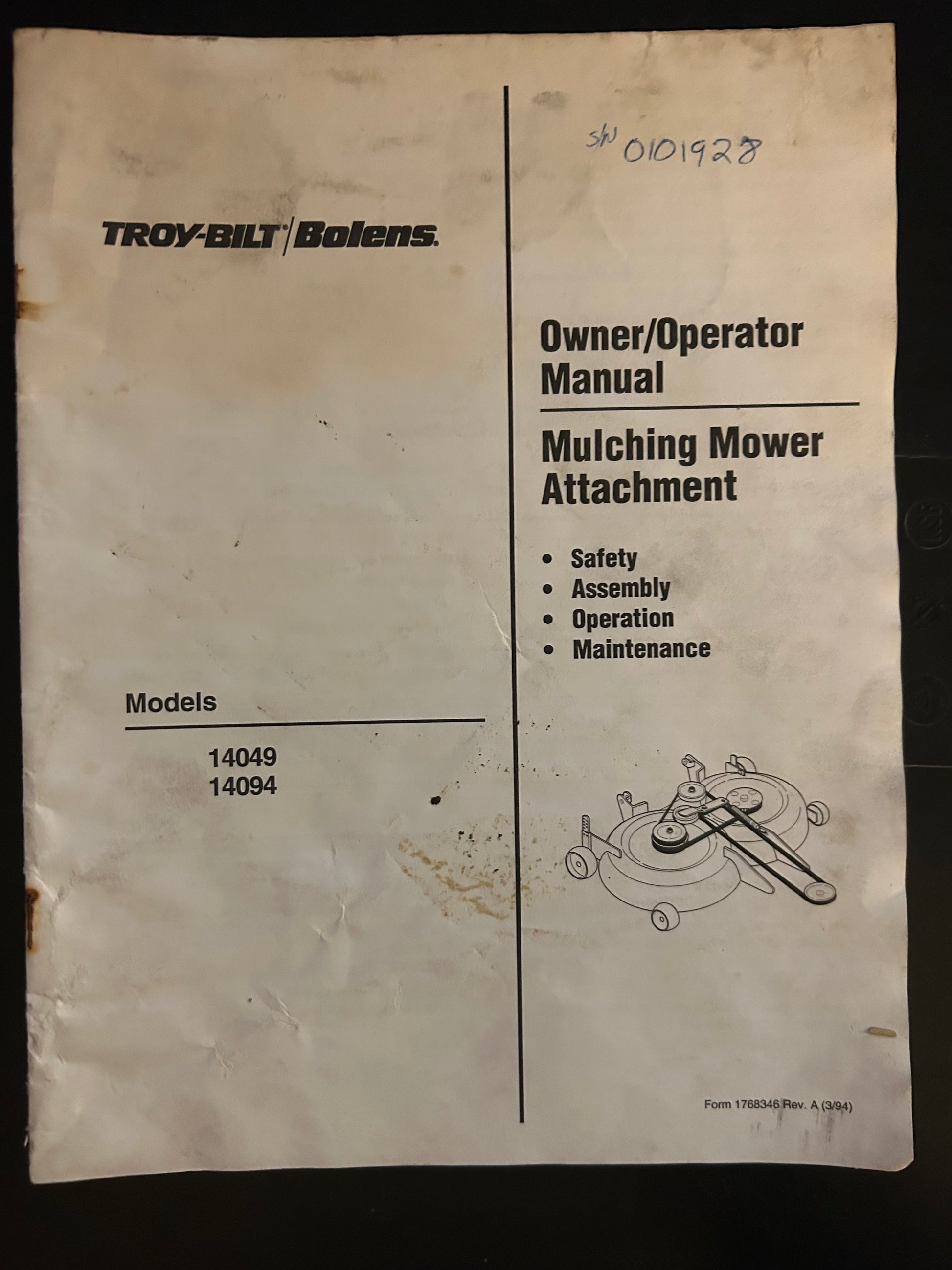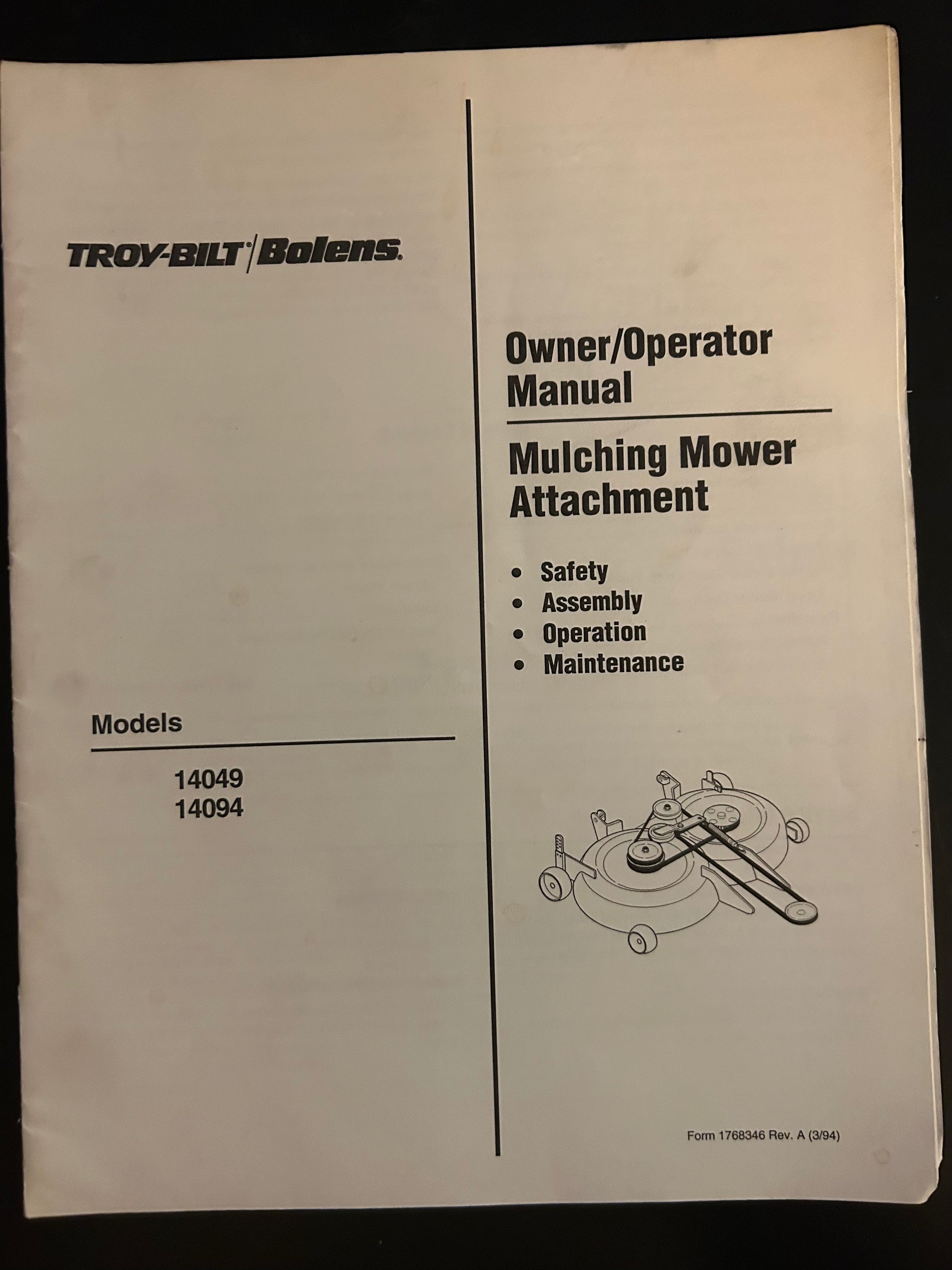 Bolens / Troy-Bilt _ Mulching Mower Attachment model 14049 & 14094 _ Owner/Operator Manual