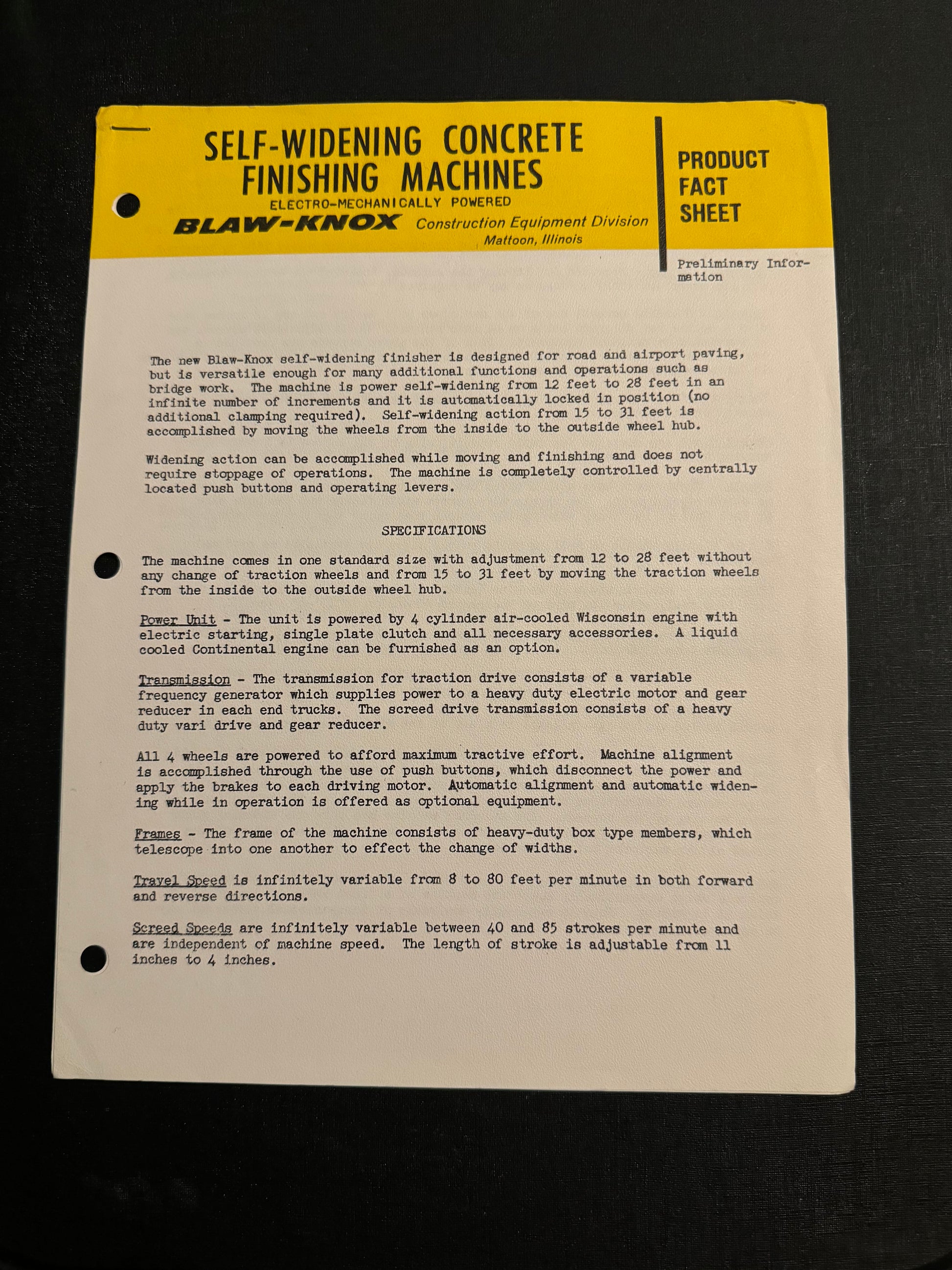 Blaw-Knox _ Self Widening Concrete Finishing Machines _ Fact Sheet