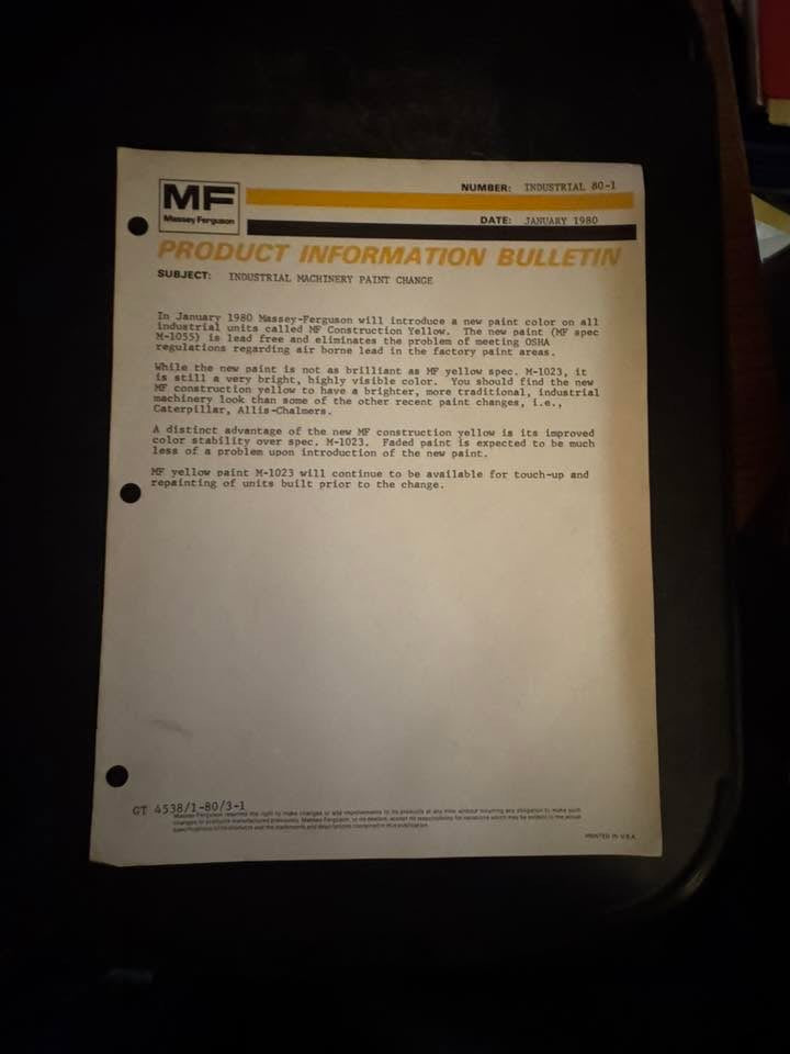 Massey Ferguson _ Industrial Machinery Paint Change January 1980 _ Product Info Bulletin