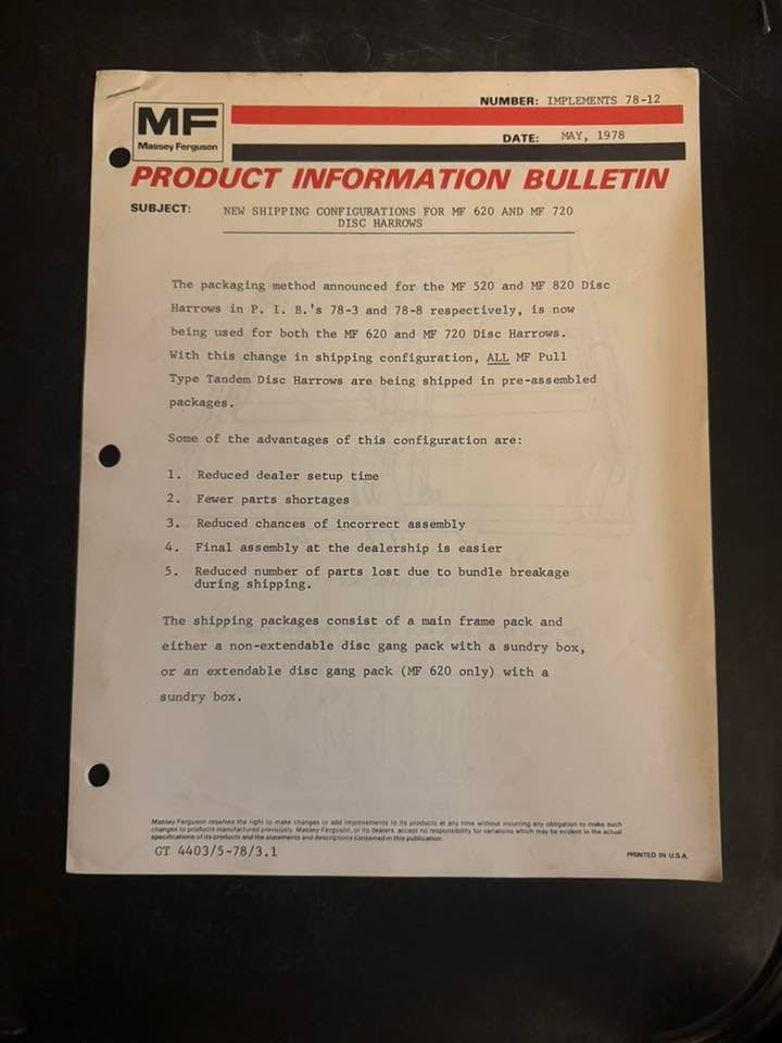 Massey Ferguson _ shipping Config for MF 620 & 720 Disc Harrows _ Product Info Bulletin