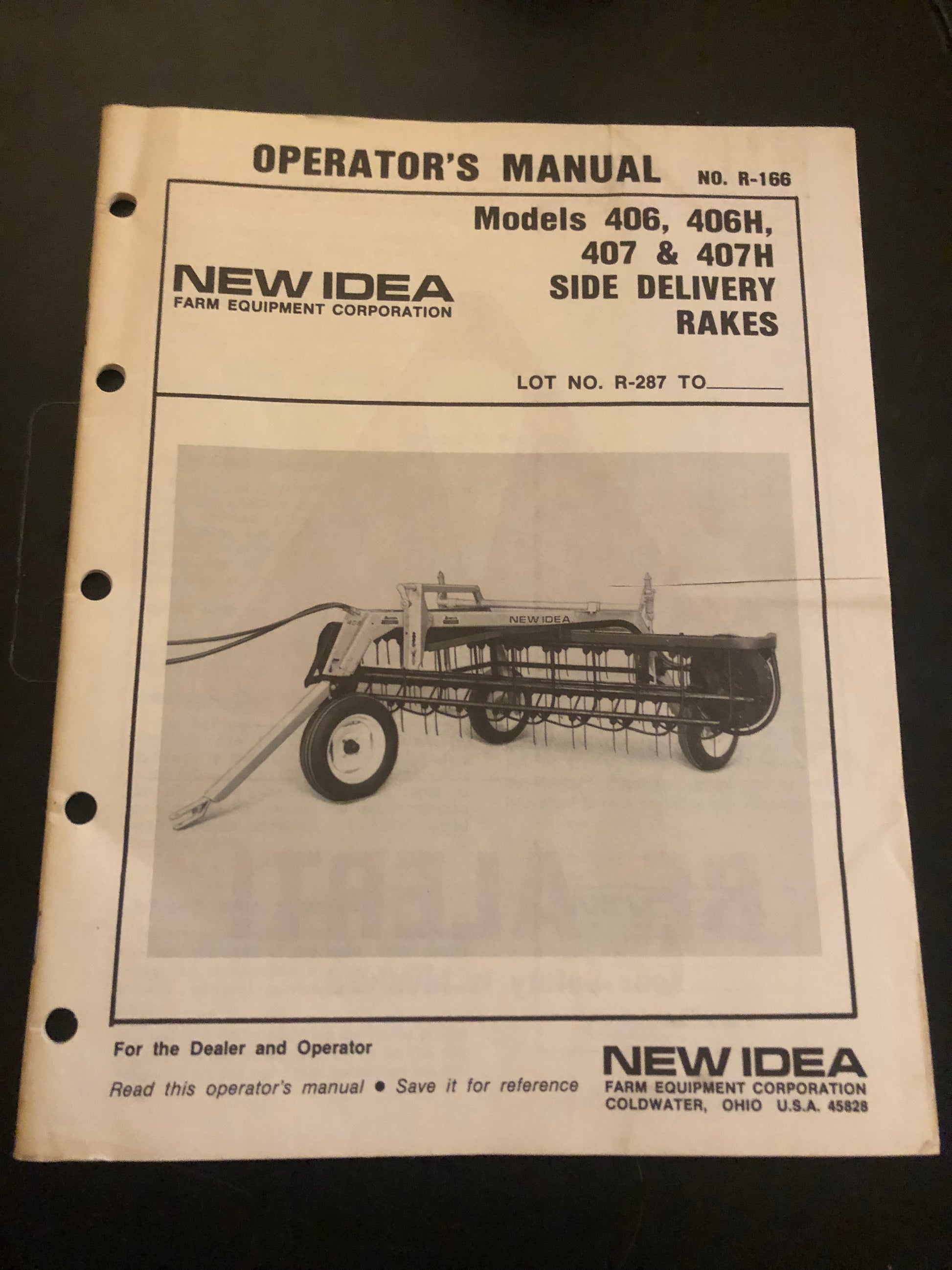 New Idea _ models 406, 406H, 407 & 407H Side Delivery Rake R-166 _ Operator’s Manual