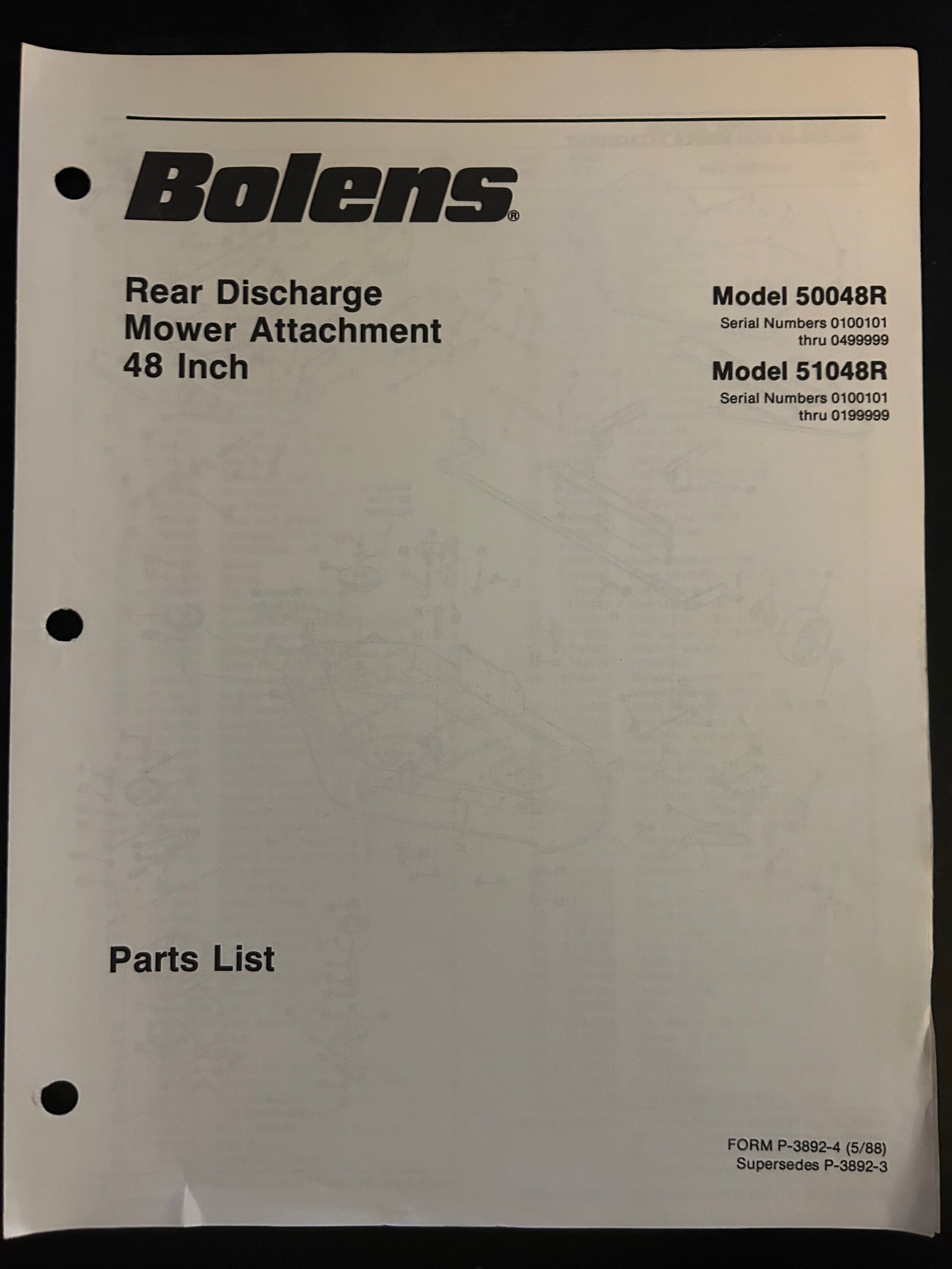 Bolens _ Rear Discharge Mower Attachment 48” model 50048R & 51048R _ Parts List