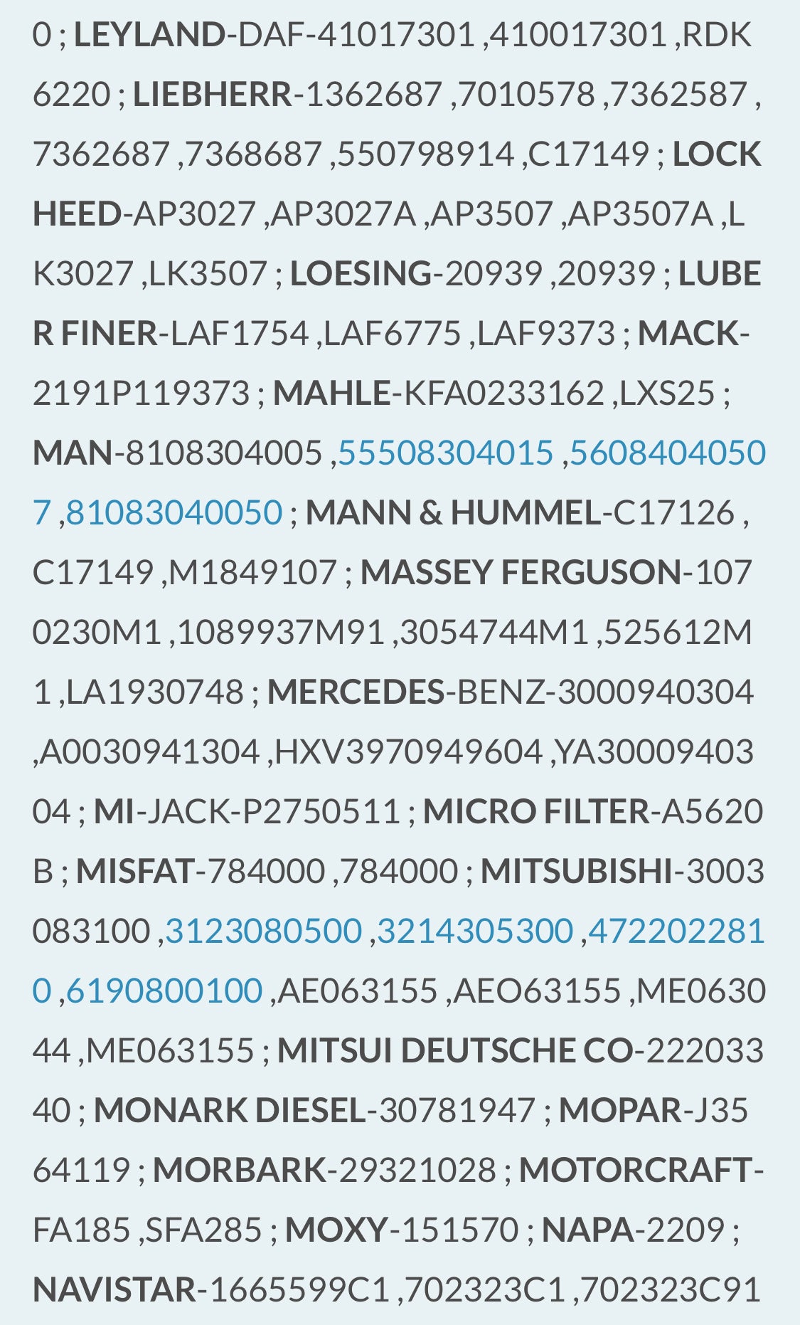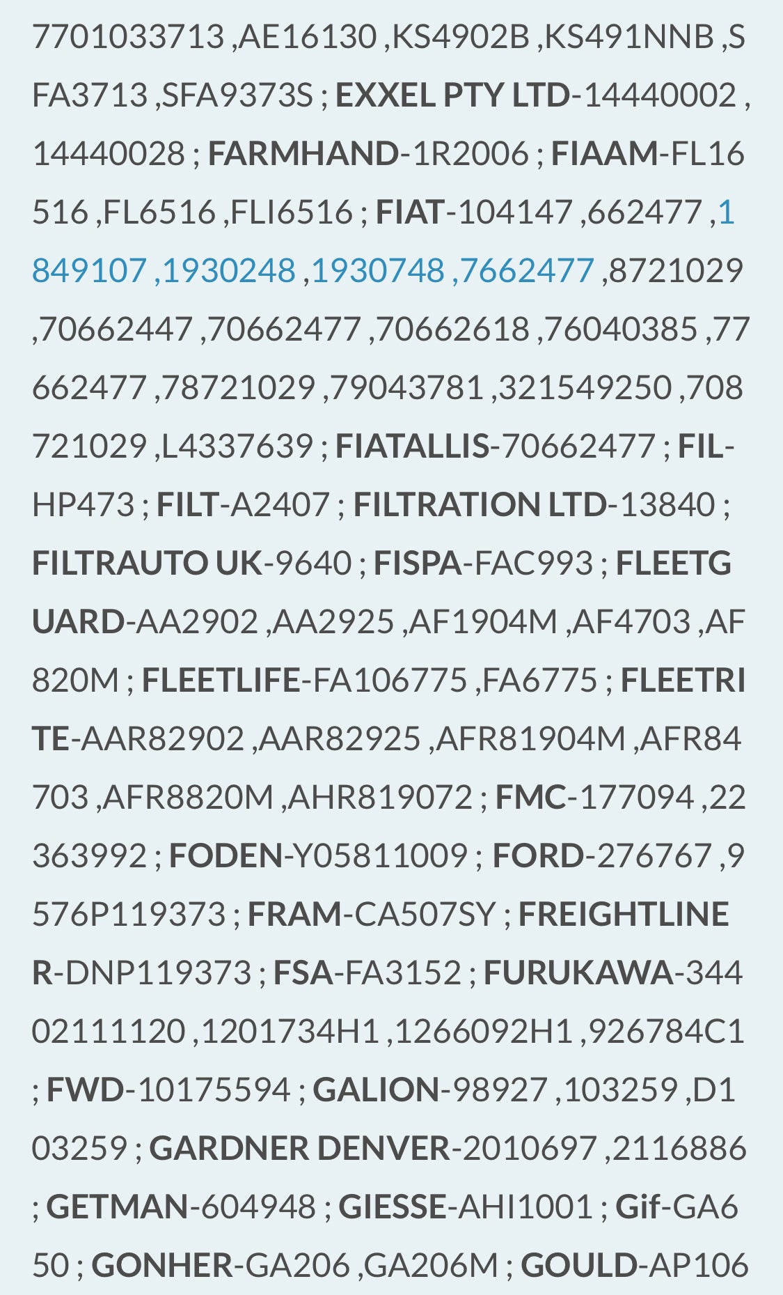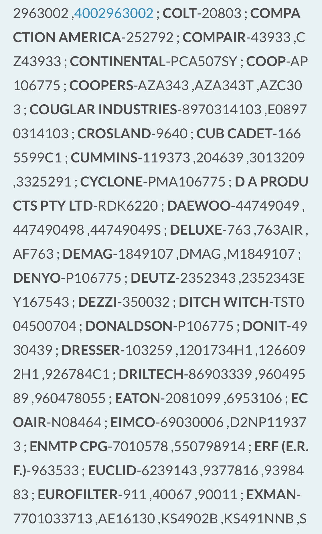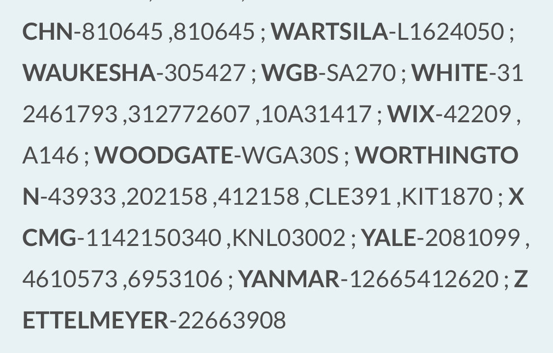 The cross references are for general reference only, please check for correct specifications and measurements.
