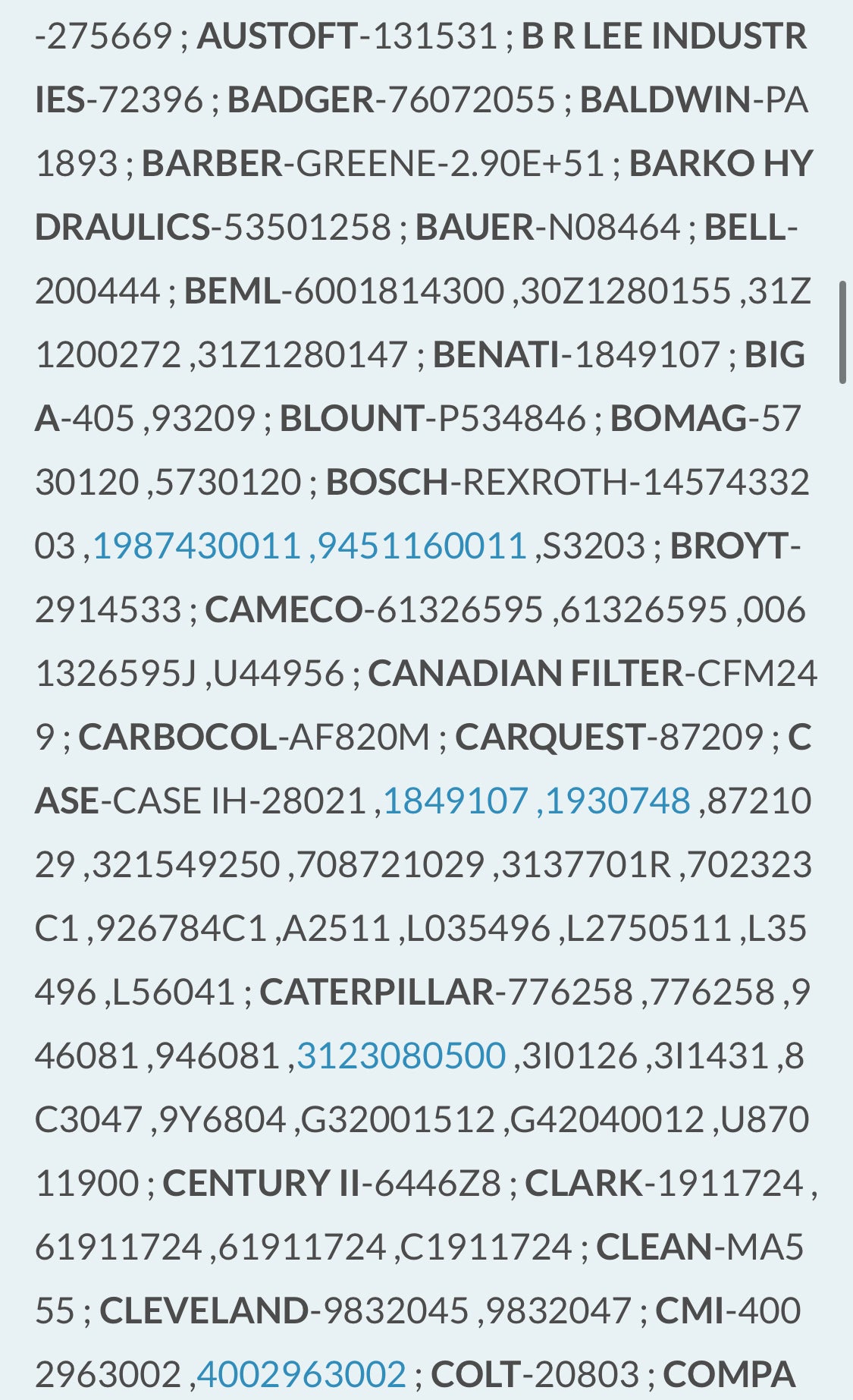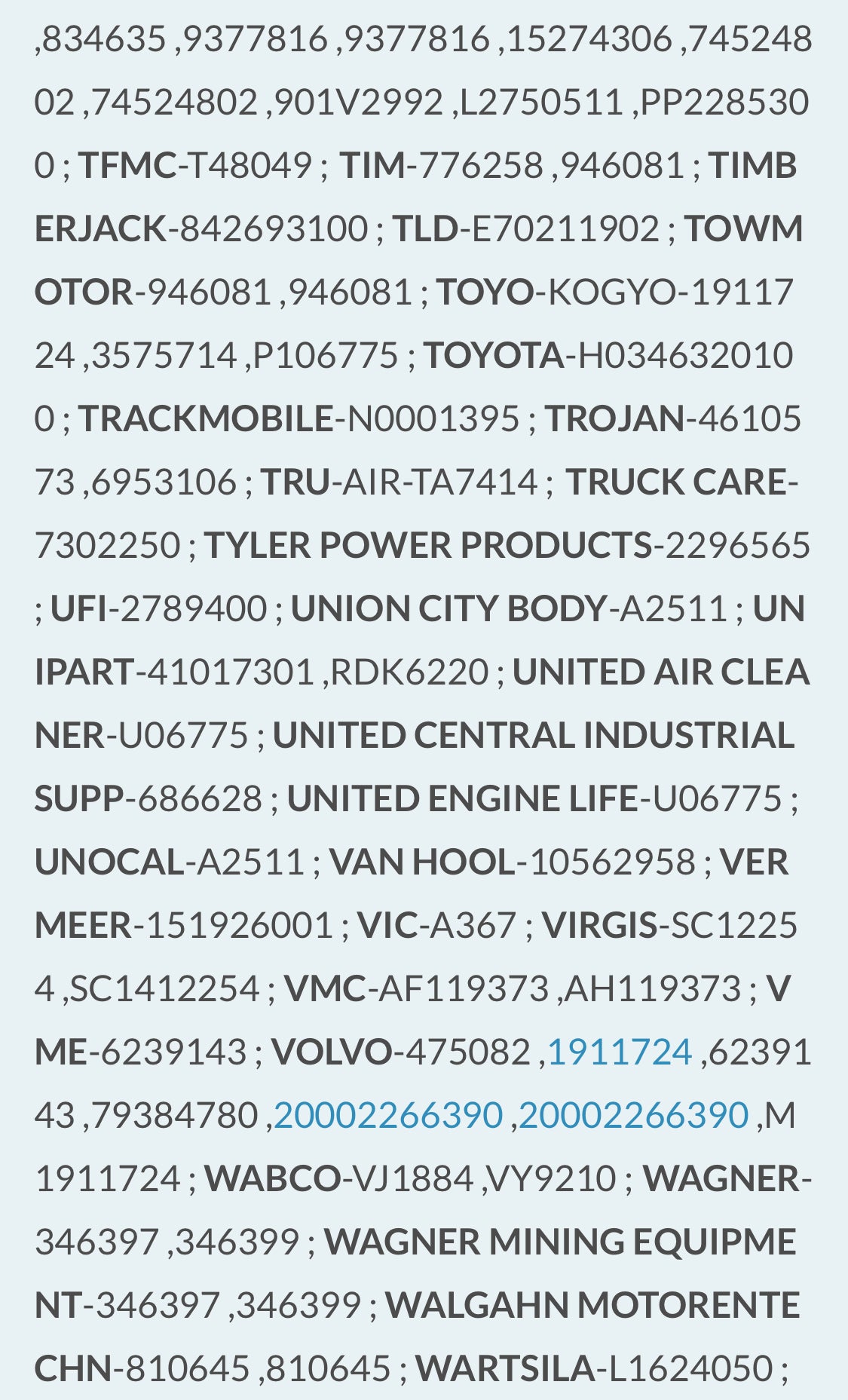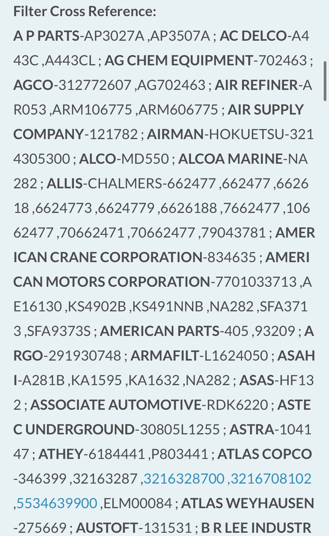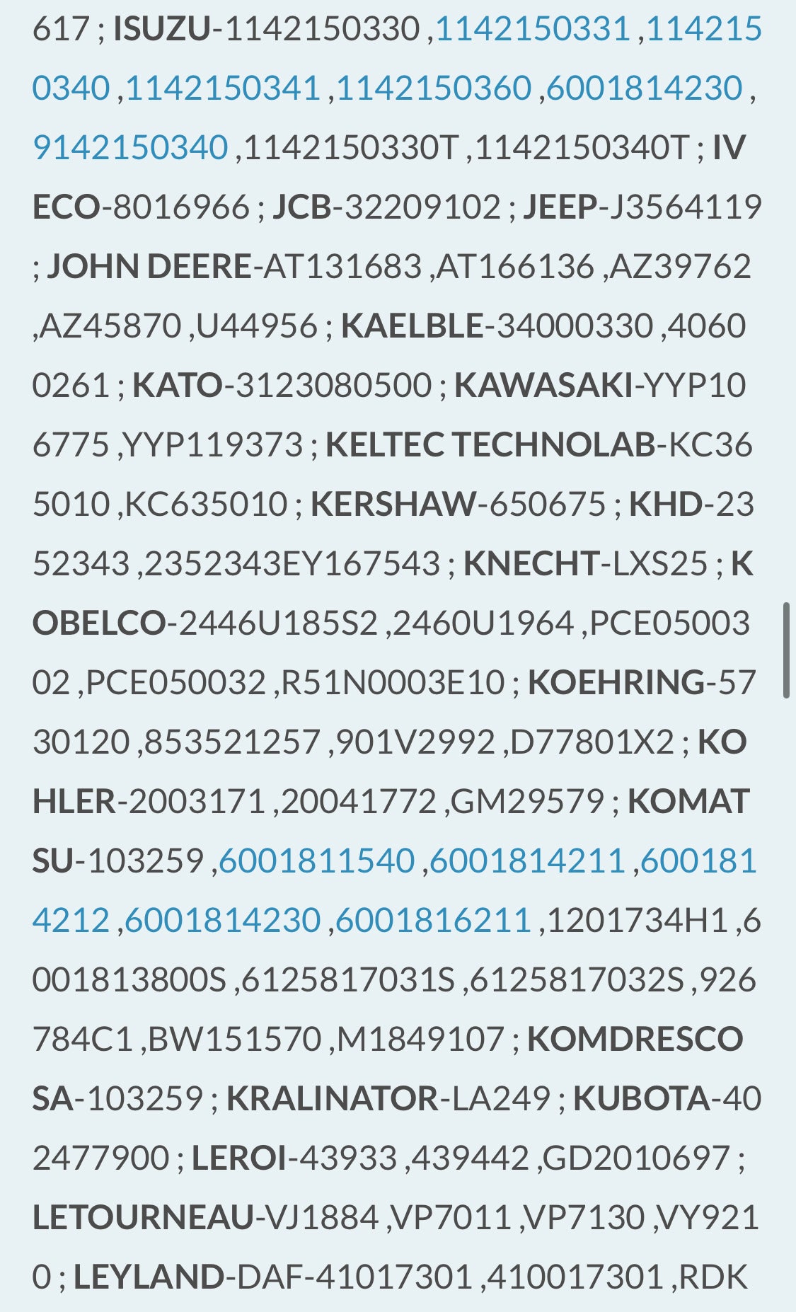 The cross references are for general reference only, please check for correct specifications and measurements.