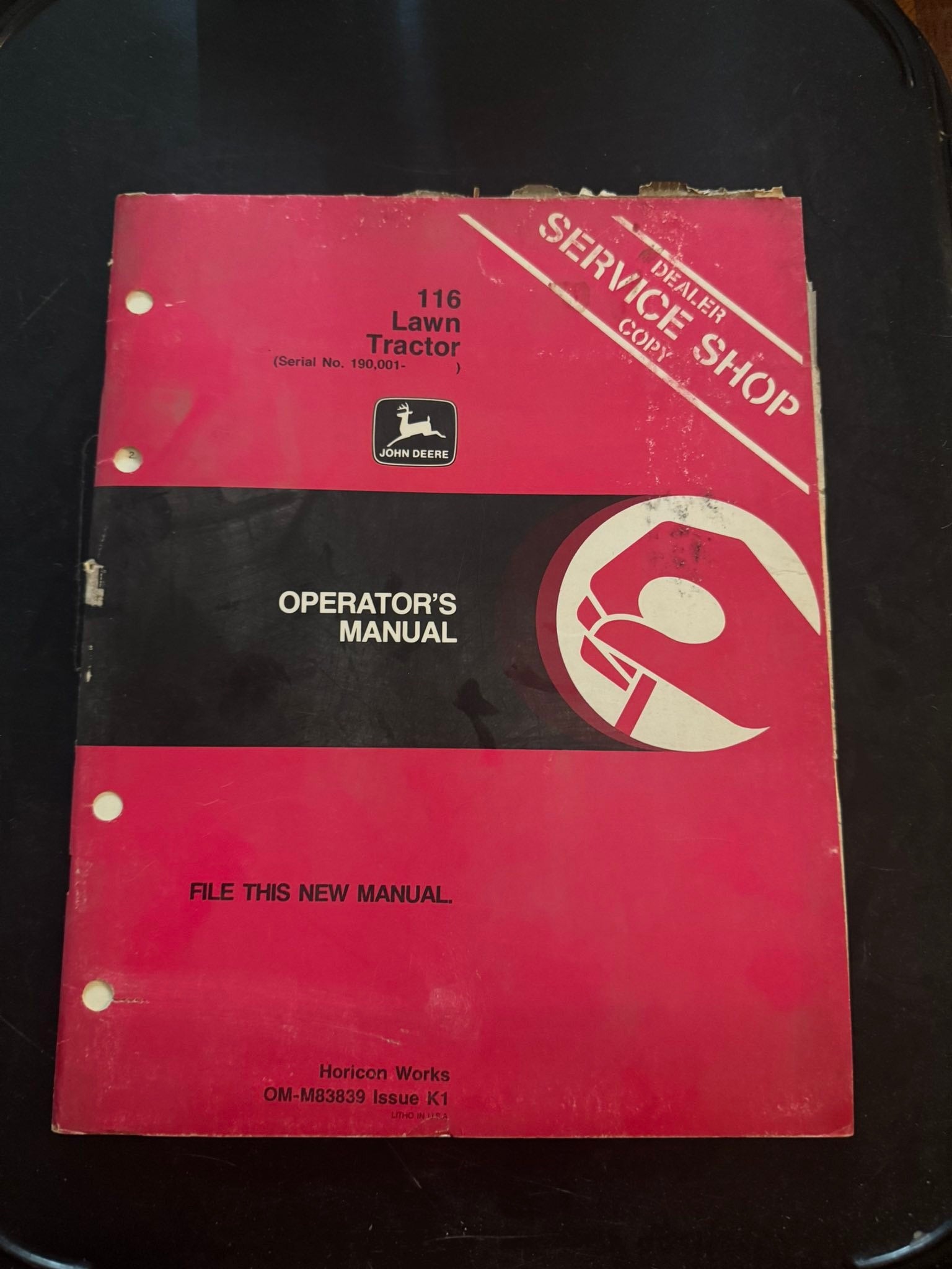 John Deere _ 116 Lawn Tractor _ Operator's Manual