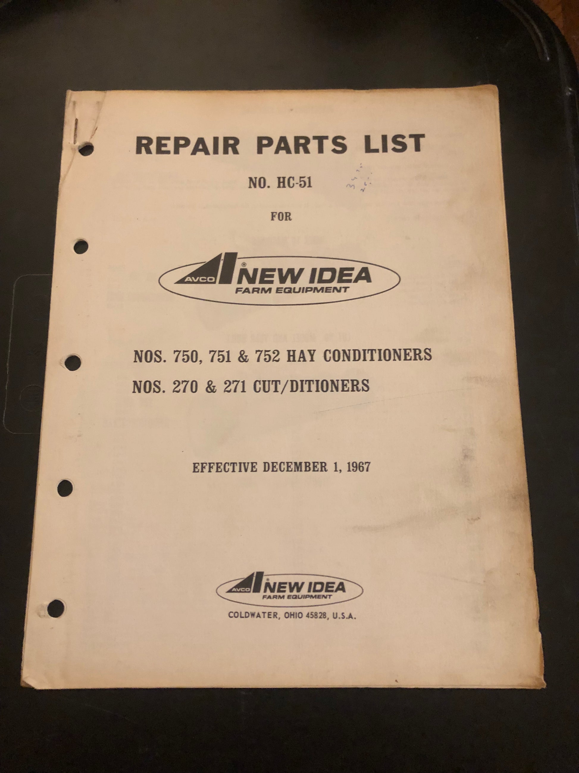 New Idea _ no 750, 751 & 752 Hay Conditioners & no 270 - 271 Cut/Ditioners _ Repair Parts List