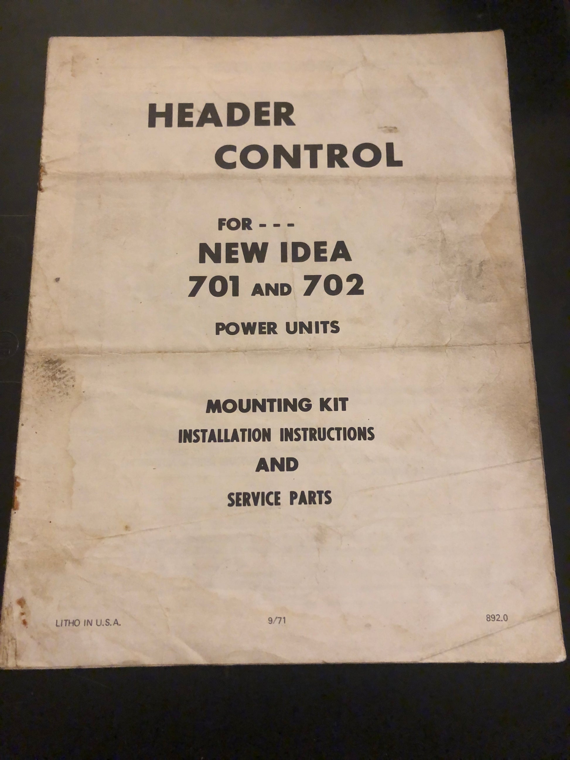 New Idea _ Header Control 701 & 702 Power Units Mounting Kit _ Installation Instructions & Service Parts