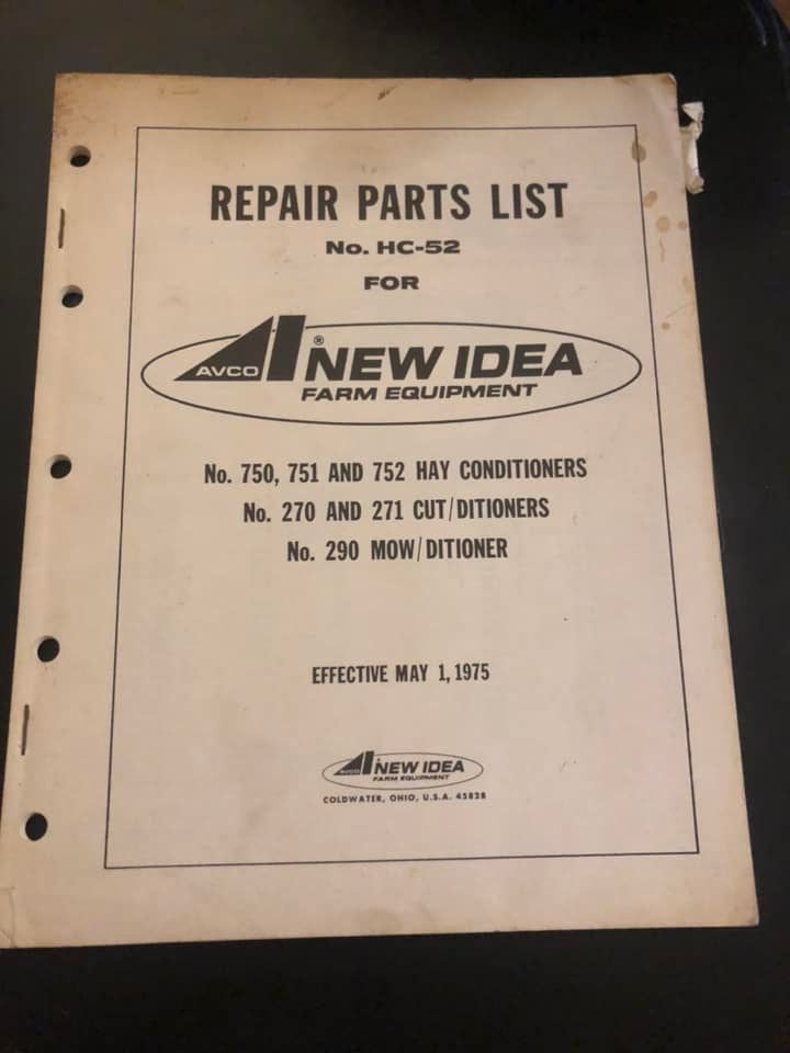 New Idea _ no 750, 751 & 752 Hay Conditioners HC-52 _ Repair Parts List