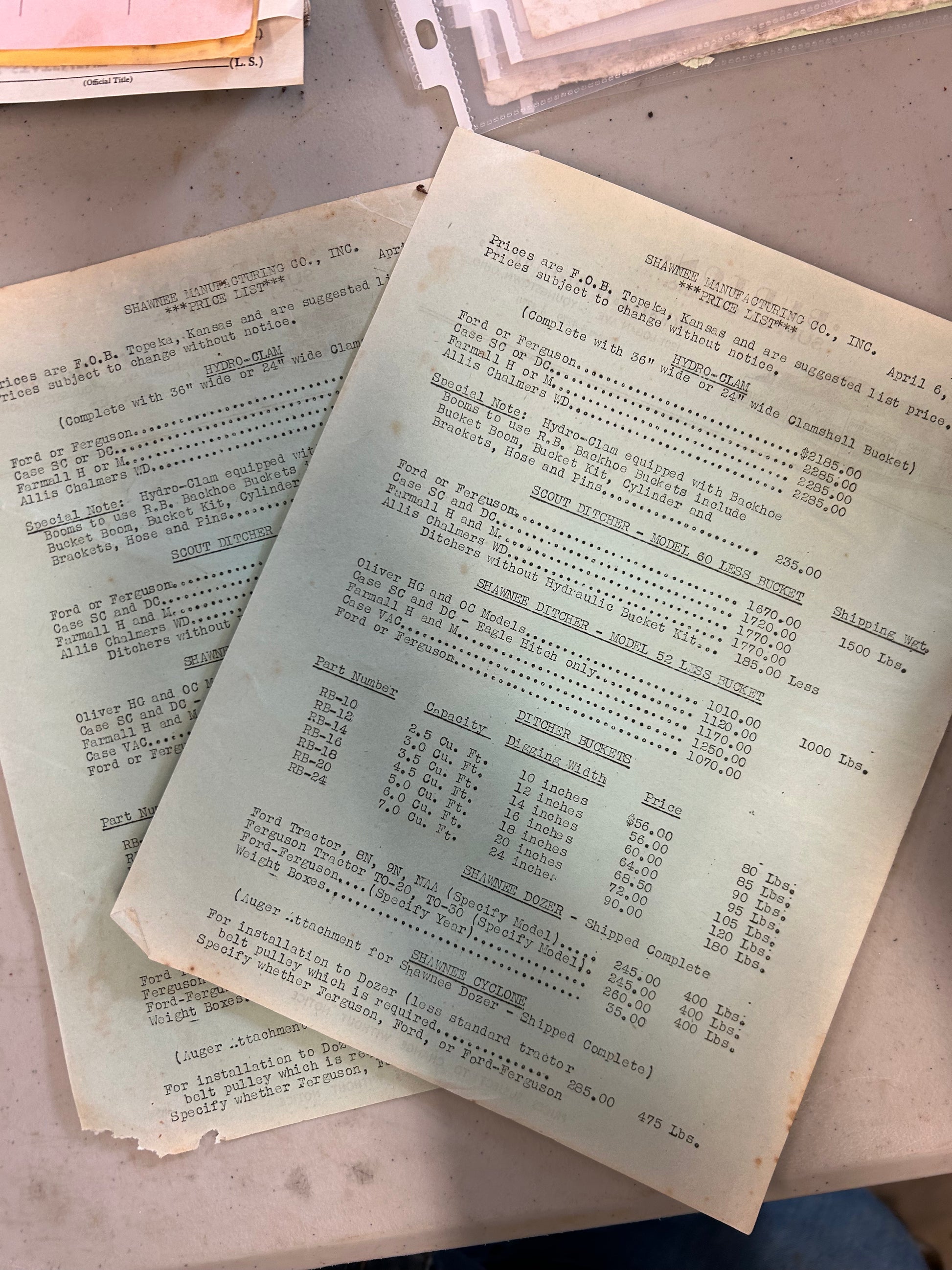 Shawnee Manufacturing _ Vintage Price Sheet
