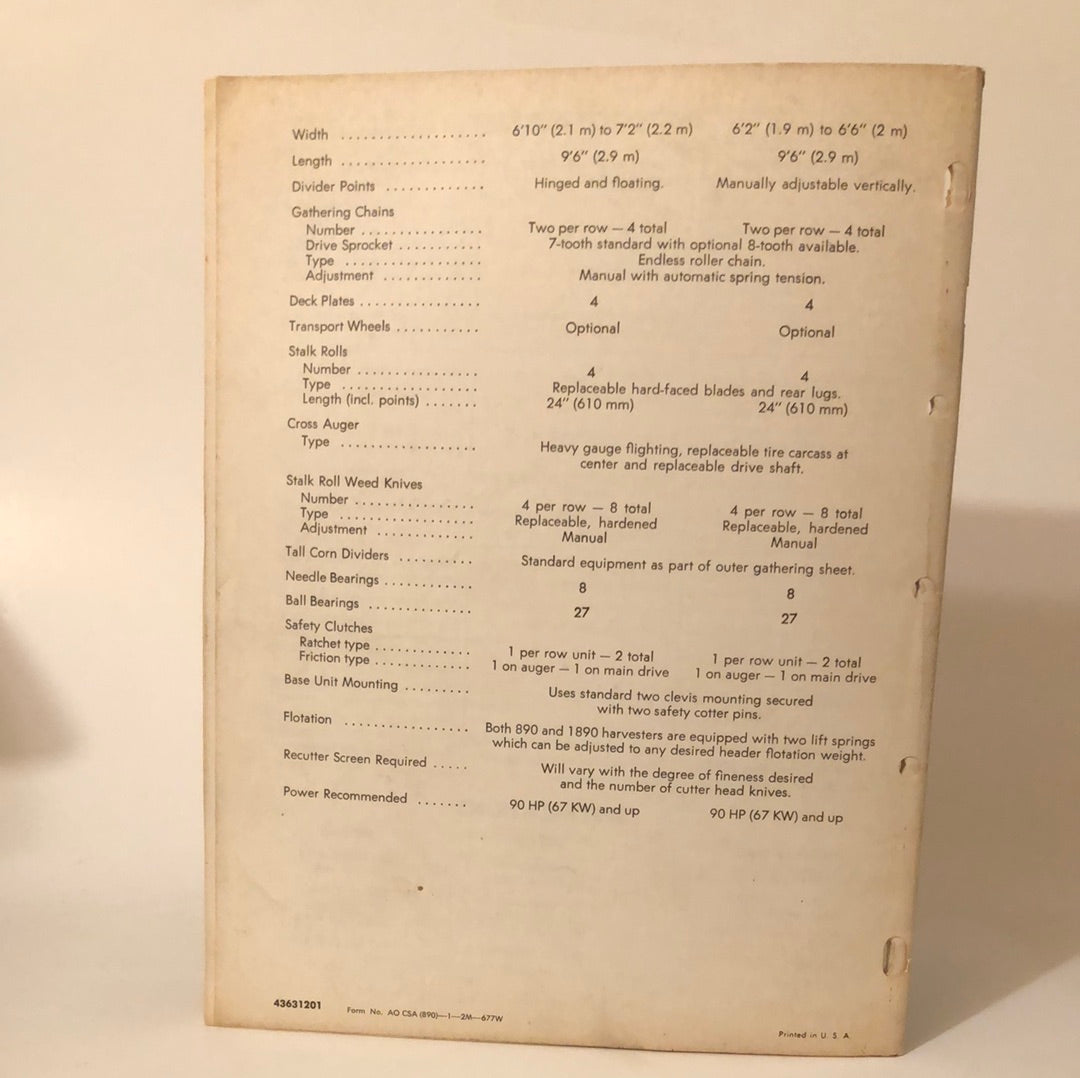 Sperry New Holland Corn Snapping Attachment Model 890-E2 & 890-EN2 - Operator's Manual w/Assembly Info