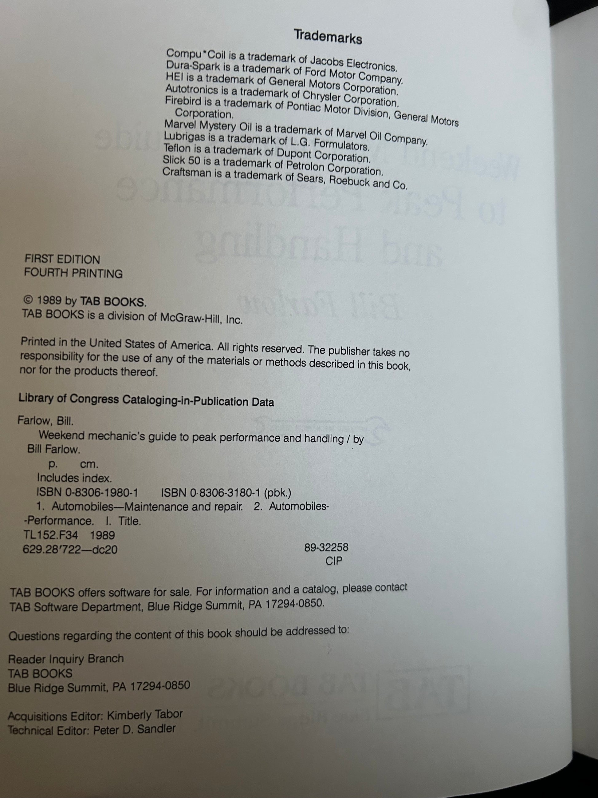 Weekend Mechanics _ Guide to Peak Performance & Handling by Bill Farlow